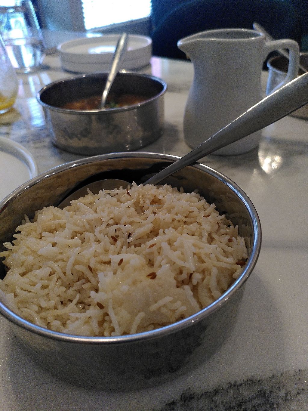 Serves meat, vegan options available. Restaurant serving authentic Punjabi dishes which change every month or so. Open for lunch and dinner at the moment. There is always a vegan option and the chef understands veganism and is flexible., Pani puri, chana masala, poppadoms (the menu changes frequently). Open Wed 05:30-10:30, Thu-Sun 17:30-22:30. Check website for most up-to-date hours.