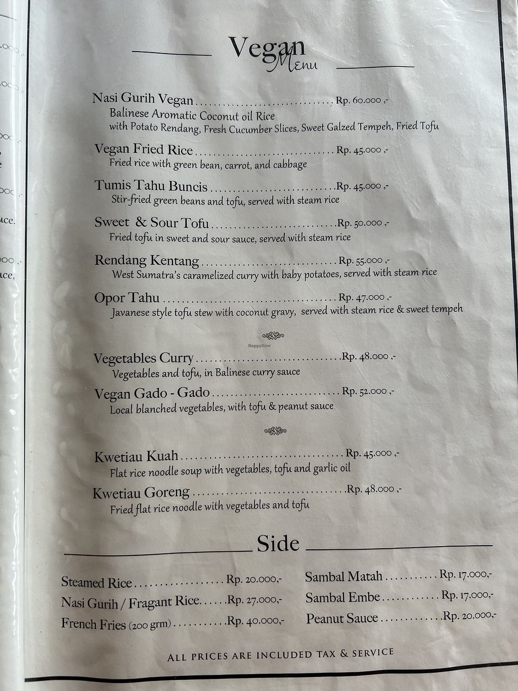 Cendana Restaurant my go to place in Bali when i crave for tasty vegan Indonesian dishes. Even though it is not even a vegetarian restaurant, but Cendana has quite a few vegan-friendly Indonesian dishes like 'Gado-gado' (indonesian mix salad with peanut sauce), Balinese vegetable curry, 'Opor Tahu' (Braised tofu in coconut milk)to name a few. My absolute favorite is the veganized version of their 'Nasi Gurih, which is a savory rice that comes with fried tofu, sweet spicy tempe orek, vegetables curry, and spicy potato crisp. Love it! so worth the trip! Then finish it off with Black Rice Pudding 'Bubur Injin'' with Coconut Ice Cream.