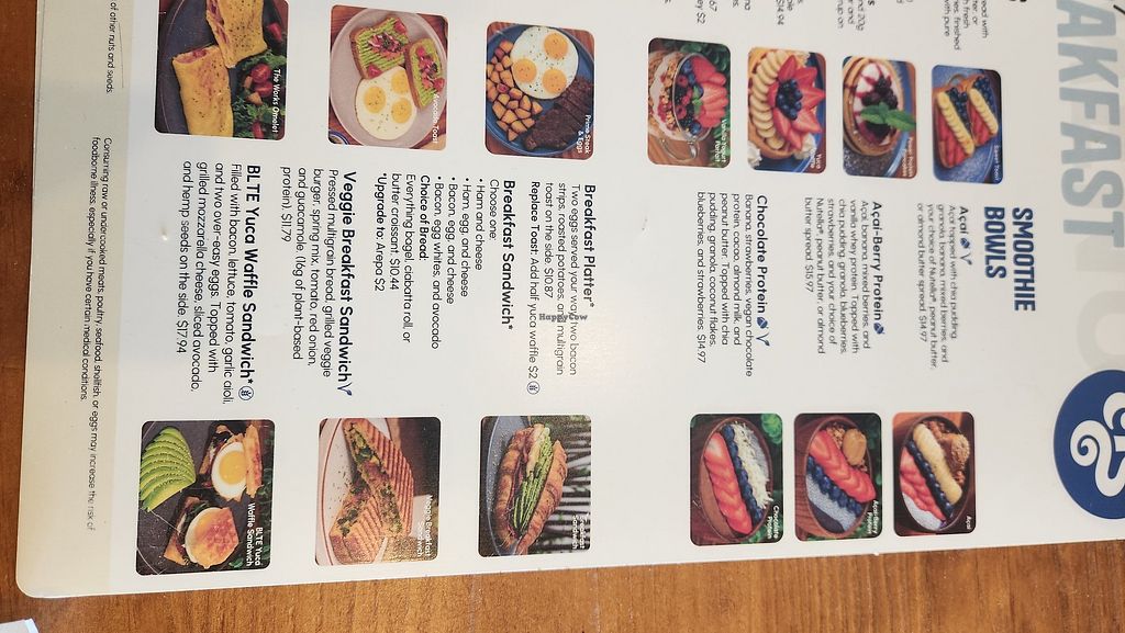 I went there a couple of weeks ago. As far as I remember, they only had two vegan options, the breakfast sandwich I had and a smoothie bowl, which sounded really good. No vegans options for lunch.