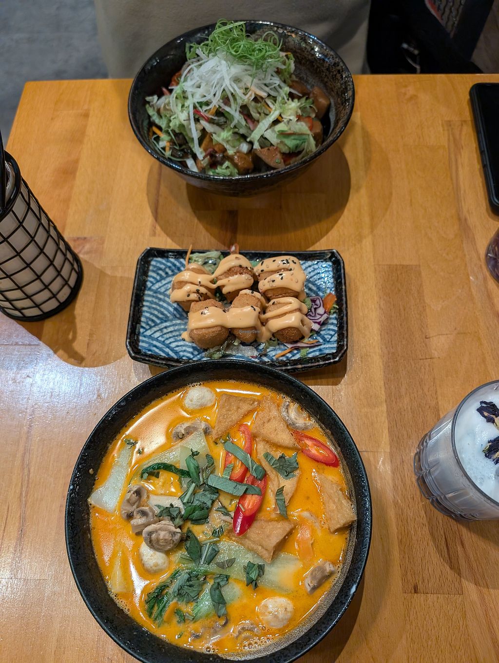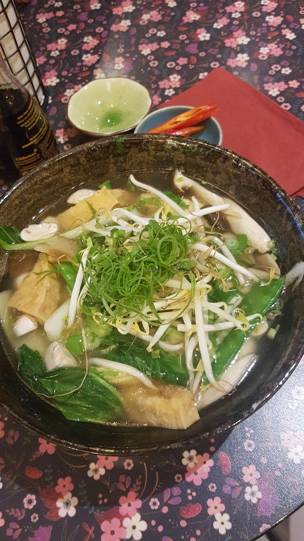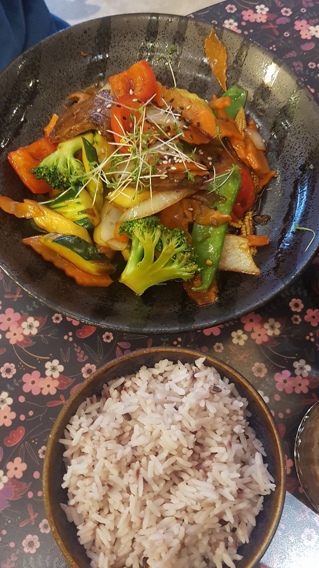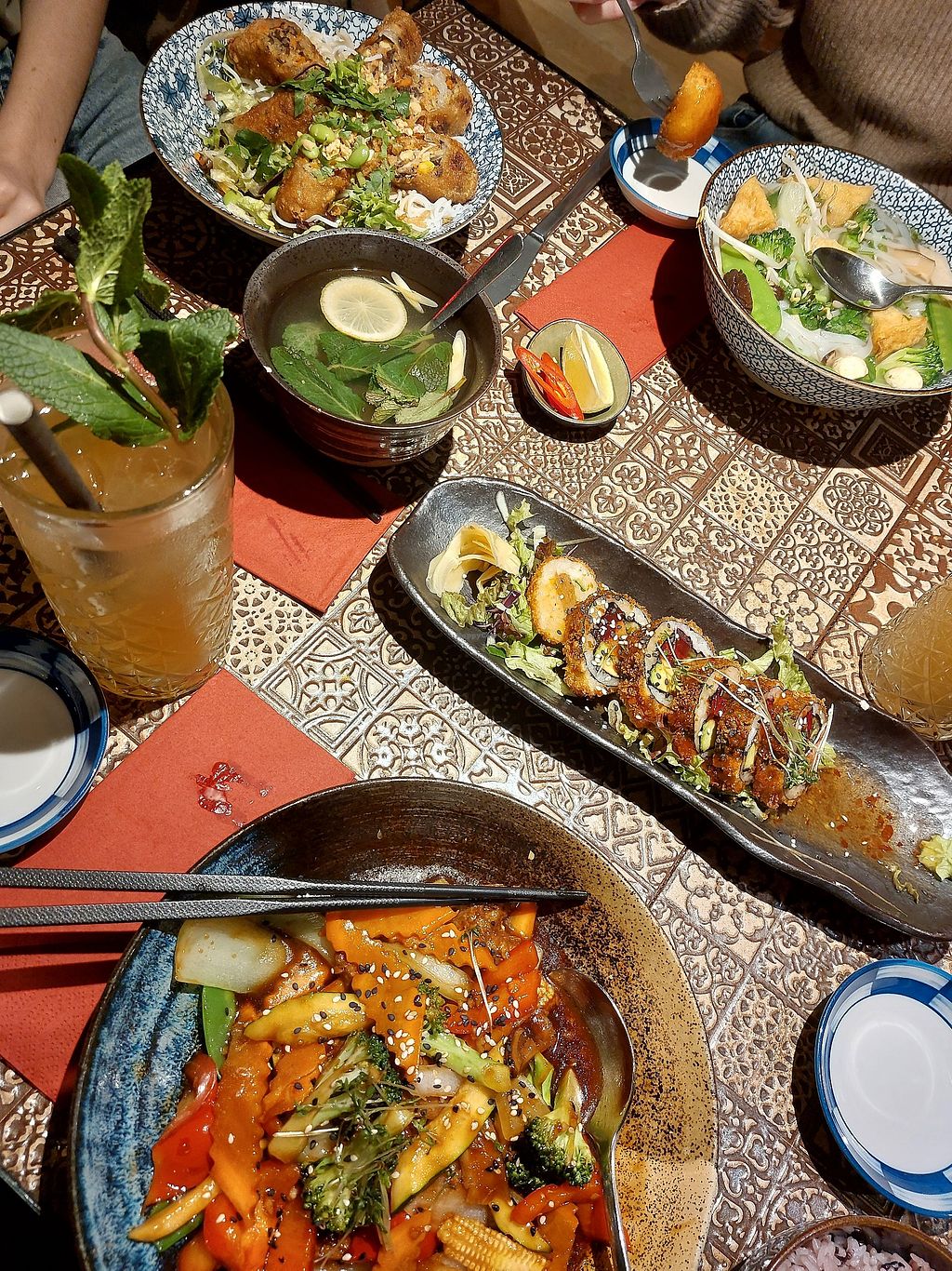 Skøn vegansk asiatisk mad. Store portioner. Desserterne så lækre ud men vi var for mættet efter hovedretten.