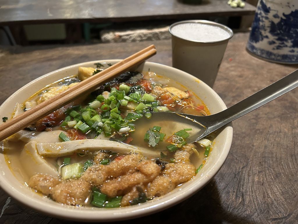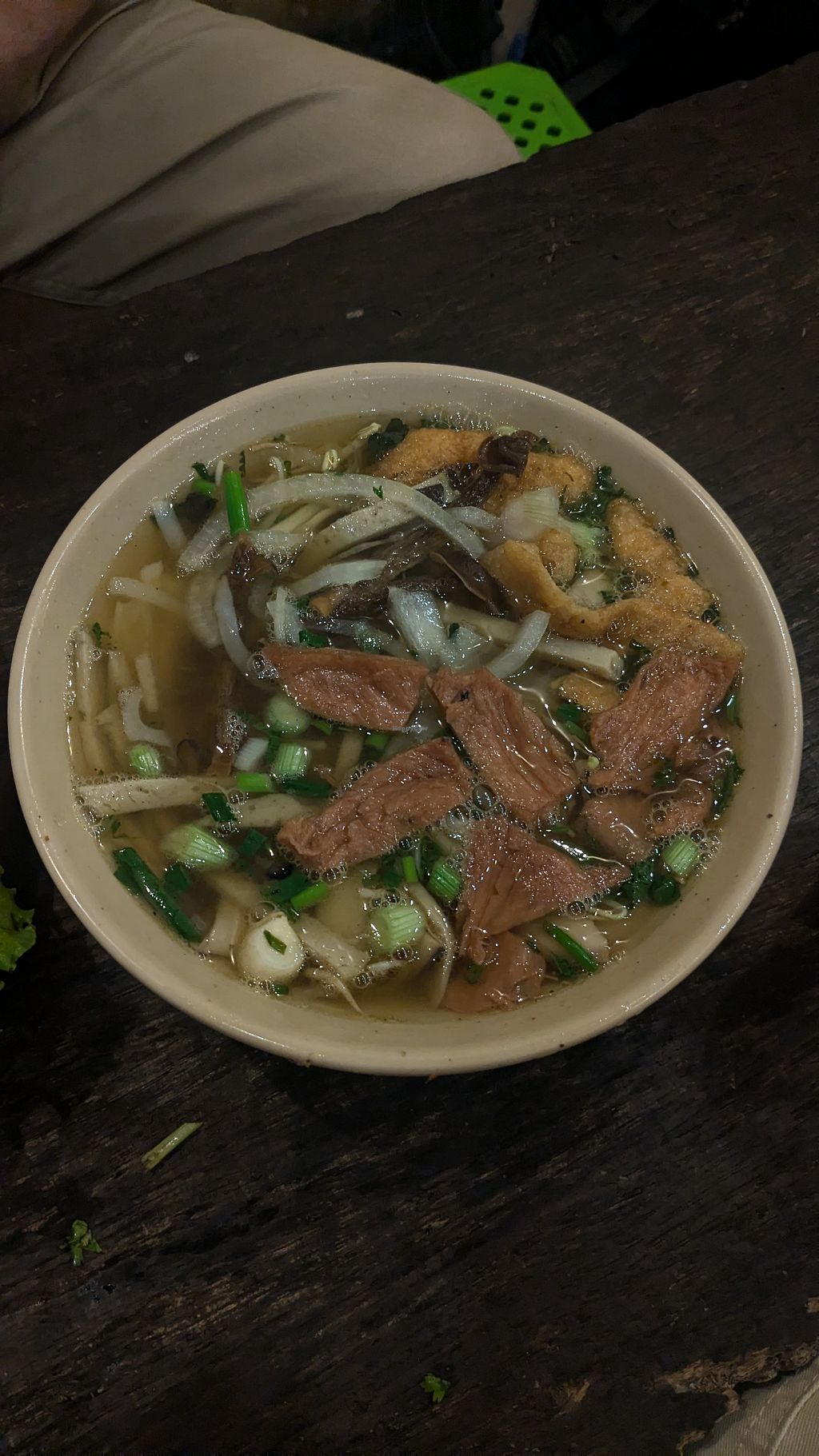 A super local spot where you get a soup with a few different options of noodles, mock meats, and herbs.