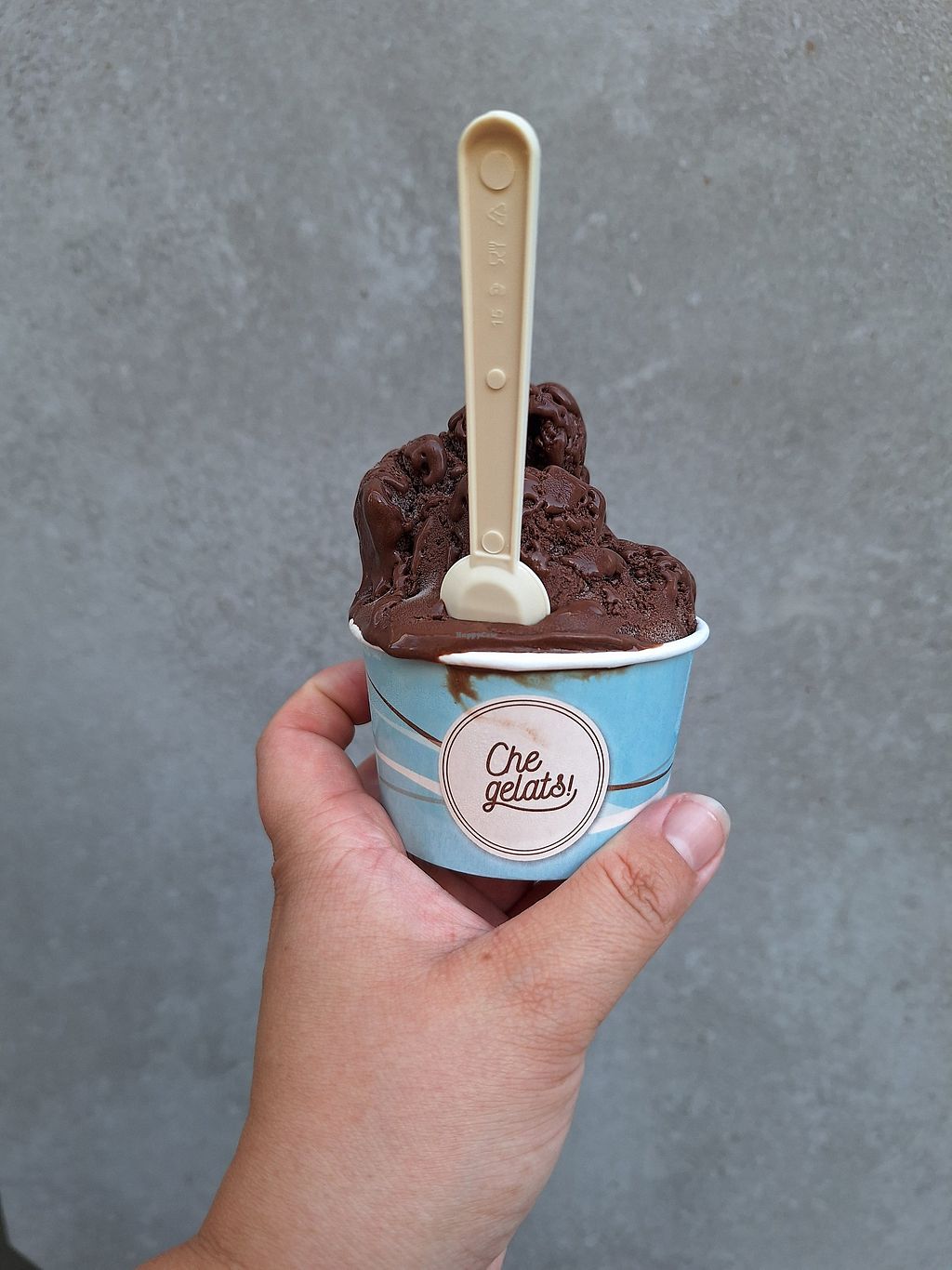 Nach dem Abendessen hatte ich Lust auf Eis und habe via Happy Cow das Che Gelats! gefunden. Dort gibt es ein paar vegane Fruchtsorbets und ein Schokoladensorbet welches vegan ist. Das Eis war ganz lecker , für einen Mediumbecher zahlt man 4,50€ , der Becher ist mittelgroß. Der Service war okay , semi freundlich.