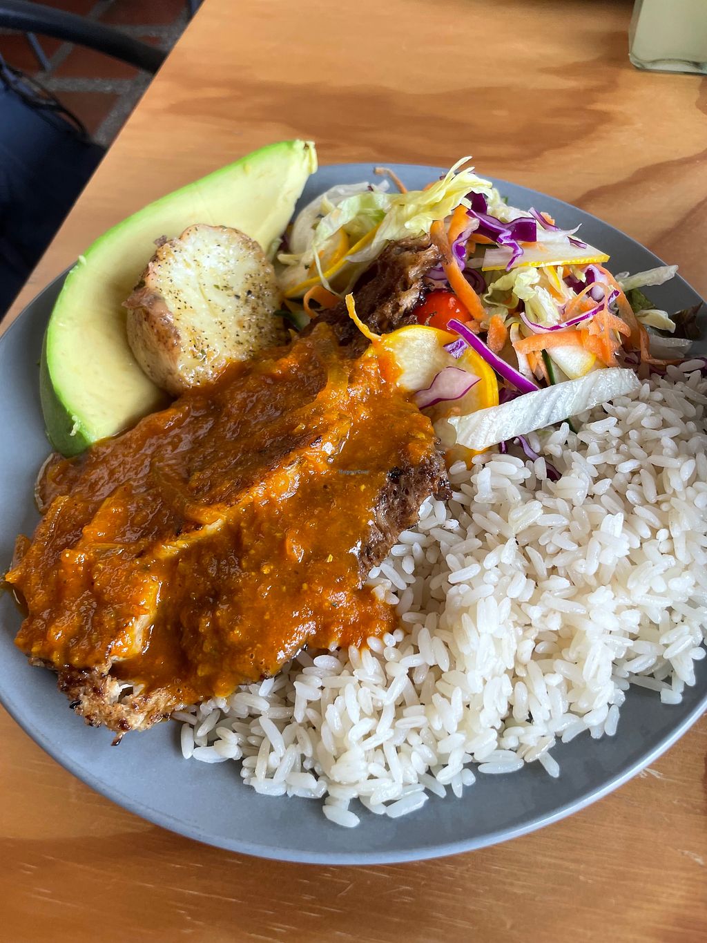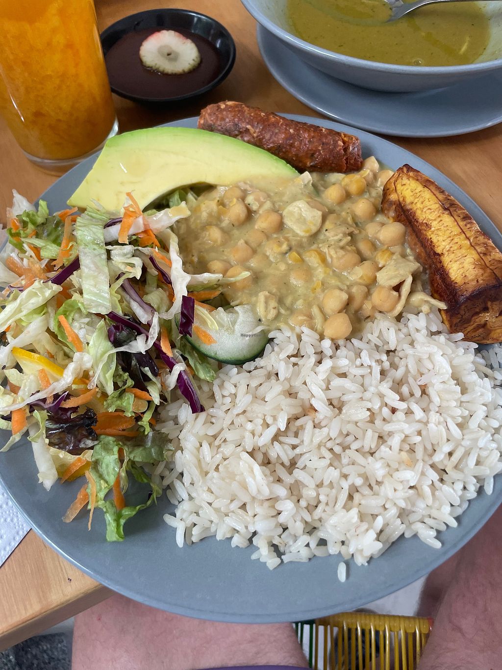 We got to Pereira on what happened to be a holiday but luckily Cherry’s was still open. We ordered the lunch of the day as well as the enchiladas. Service was wonderful and food was soo good. We even got another plate to go. There’s also a vegan bakery right next to them so we will definitely be back soon