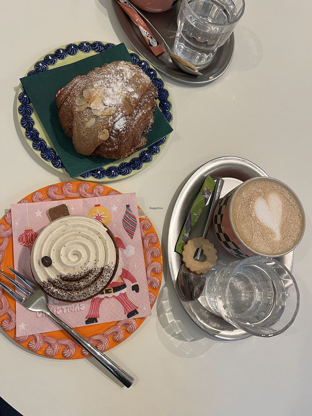 Alles schmeckt einfach köstlich. Ich war auch super happy, ein richtig gutes fluffliges veganes Croissant gefunden zu haben. Wir hatten einen kalten Iced-Cappuccino, der auch tatsächlich noch ein Schaum-Krönchen hatte, bisher hatte ich eher lieblose Iced-Kaffees erlebt - hier wird auf gute Qualität Wert gelegt. Schade, dass ich so weit weg wohne 😭