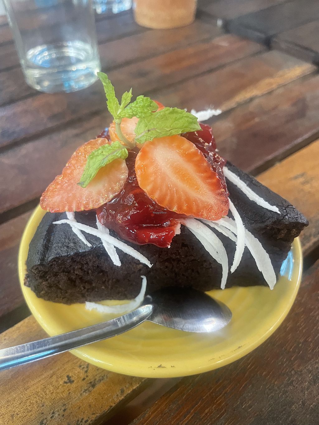 Cibo delizioso, ambiente tranquillo, buona offerta di dessert, cosa che spesso manca nei ristoranti vegani.