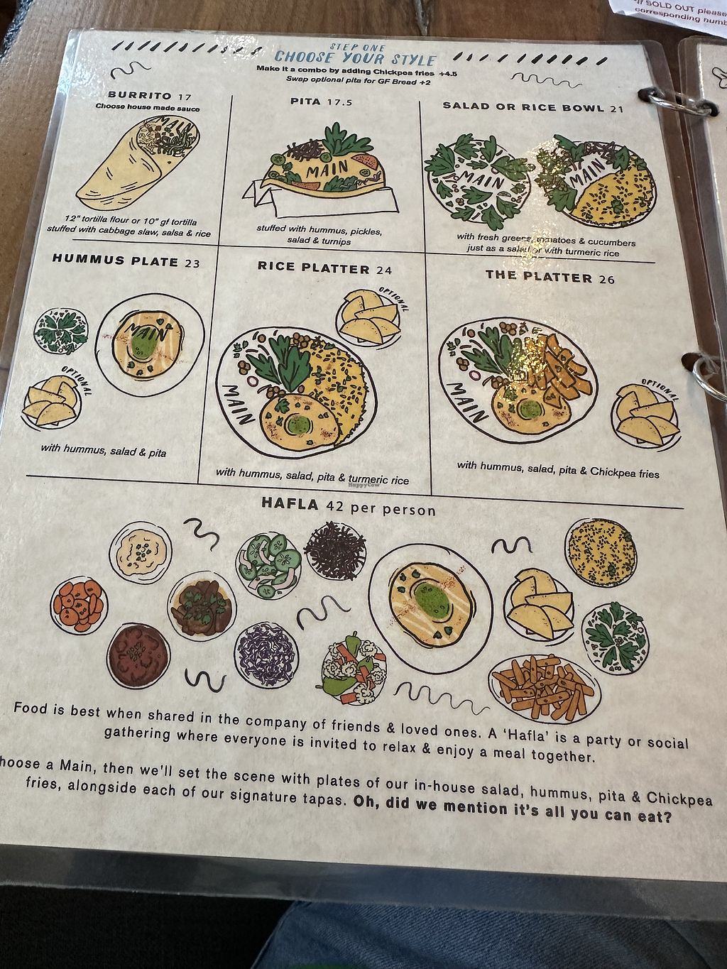 The baba ganoush and chickpea fries were perfect. I shared food with family so got to taste bits of everything and I liked most dishes. The lions mane burrito came out cold so was not my favourite but almost everything else was super nice