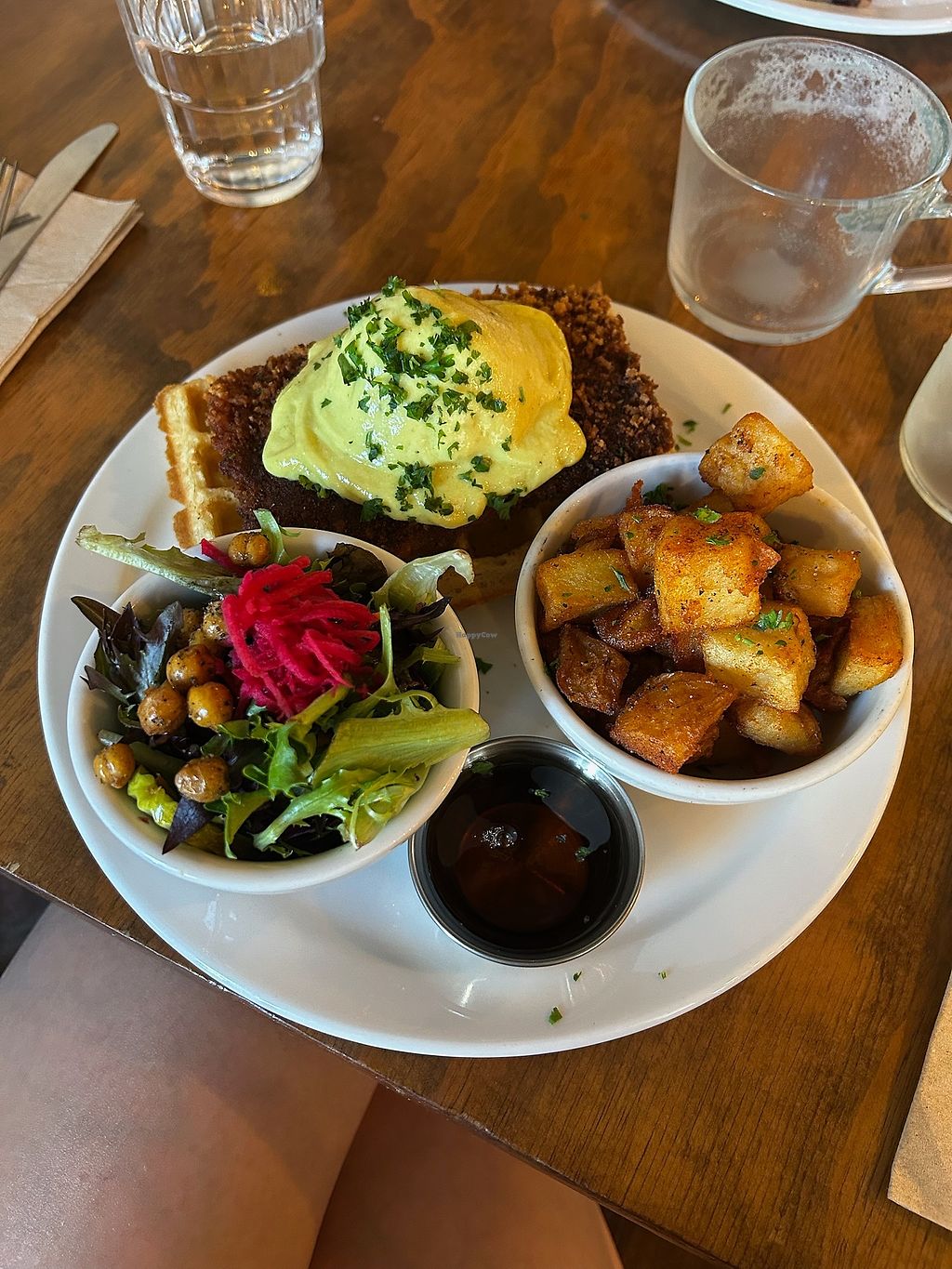 This has got to be one of the best vegan meals I have ever eaten. We ordered the Lions mane steak rice platter and the eggs benedict with chicksteak. Portions were huge and food was out of this world.