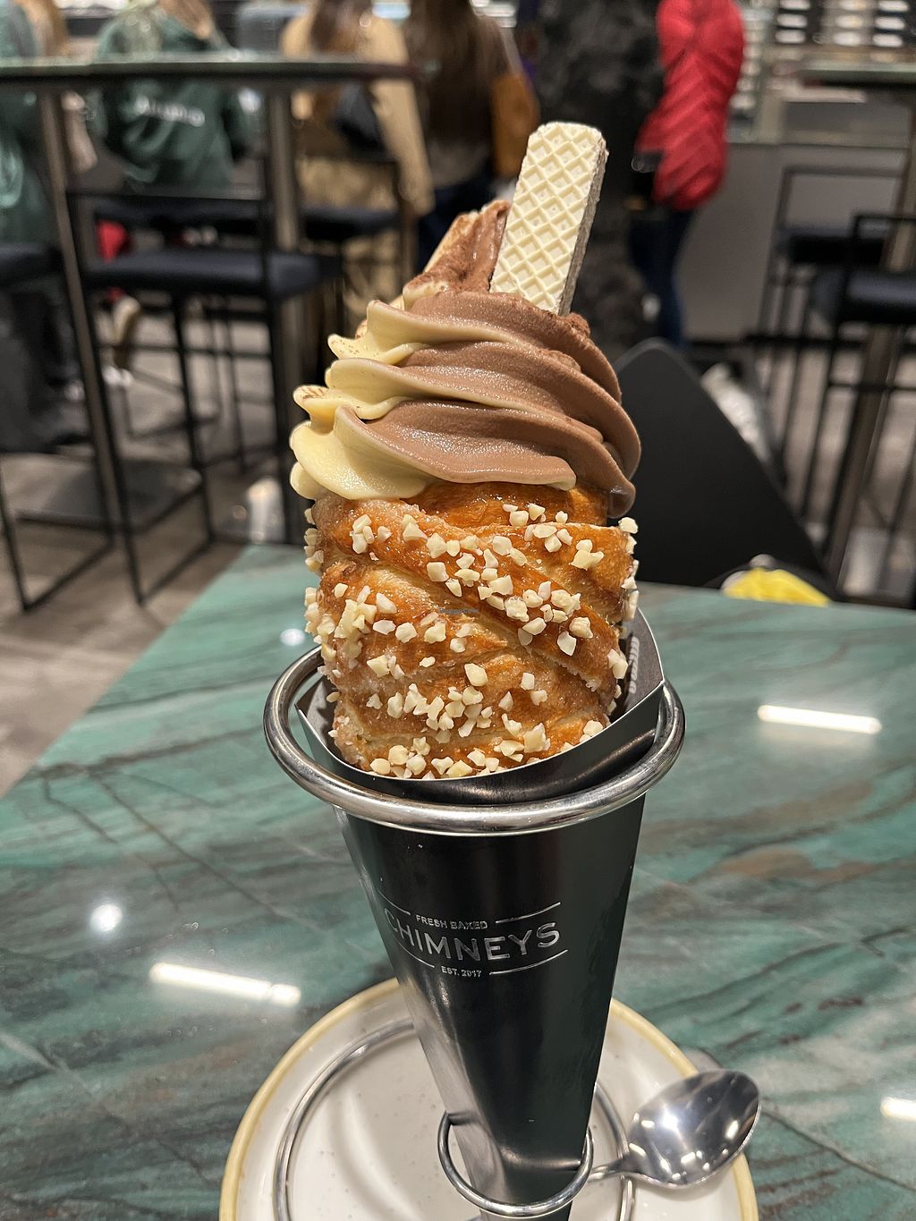 I’ve never tried anything like their chimney cake with ice cream before. It was really good, but way too big. I’d recommend either ordering it when you’re *very* hungry or sharing it.