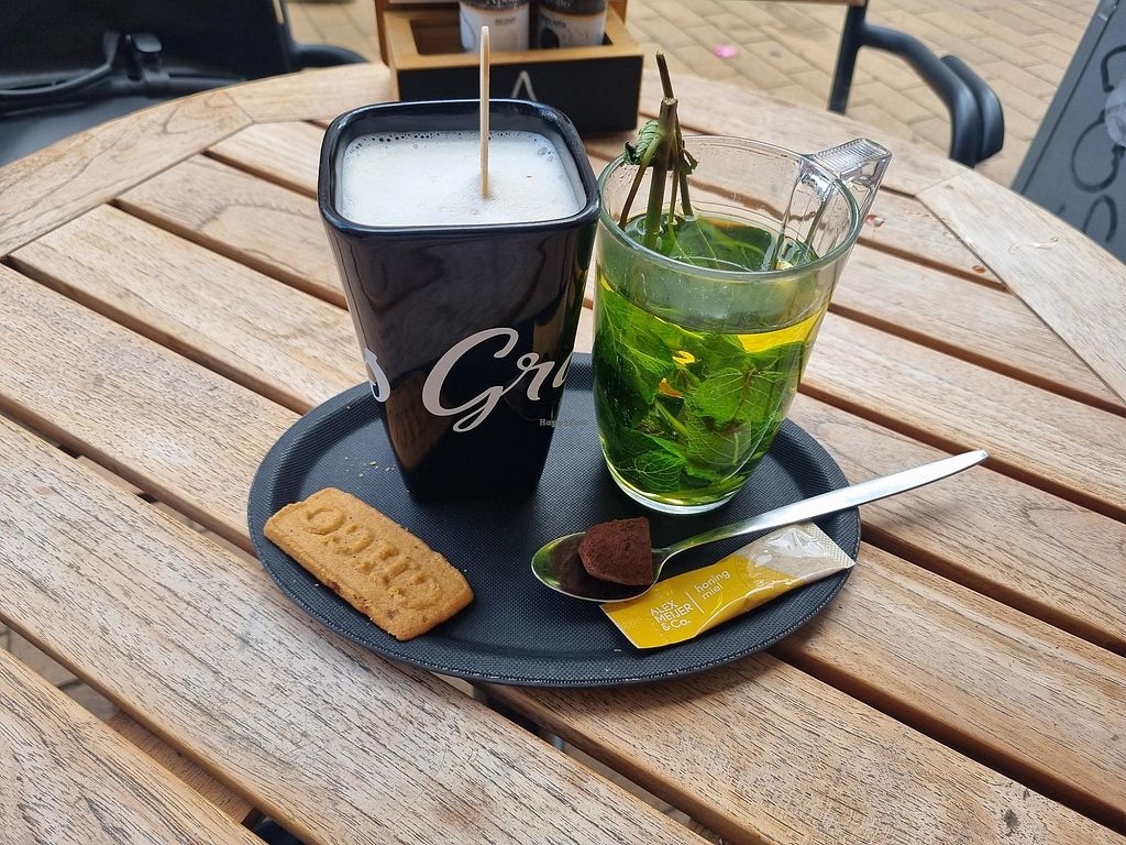 Really love the look of this place! I tried a piece of their vegan cake and it was very tasty. It was supposed to be bananabread, but I didn't taste any banana haha, it tasted more like vanilla cake. I asked if they could heat the cake for me because it was served very cold, so they put it under the grill😄Staff was very friendly!