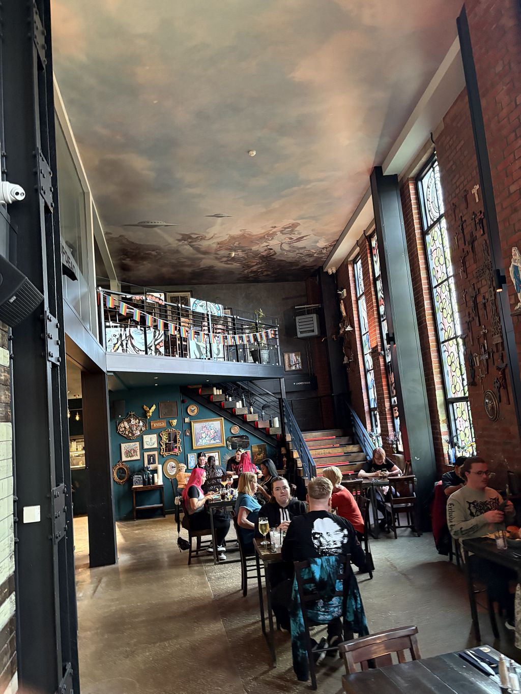 There seem to be few vegan only places in Sheffield so it was great to visit this place. A large historic warehouse converted into a restaurant and bar. The decor and ambience is rebellious, irreligious, defiant. Exceptional service.