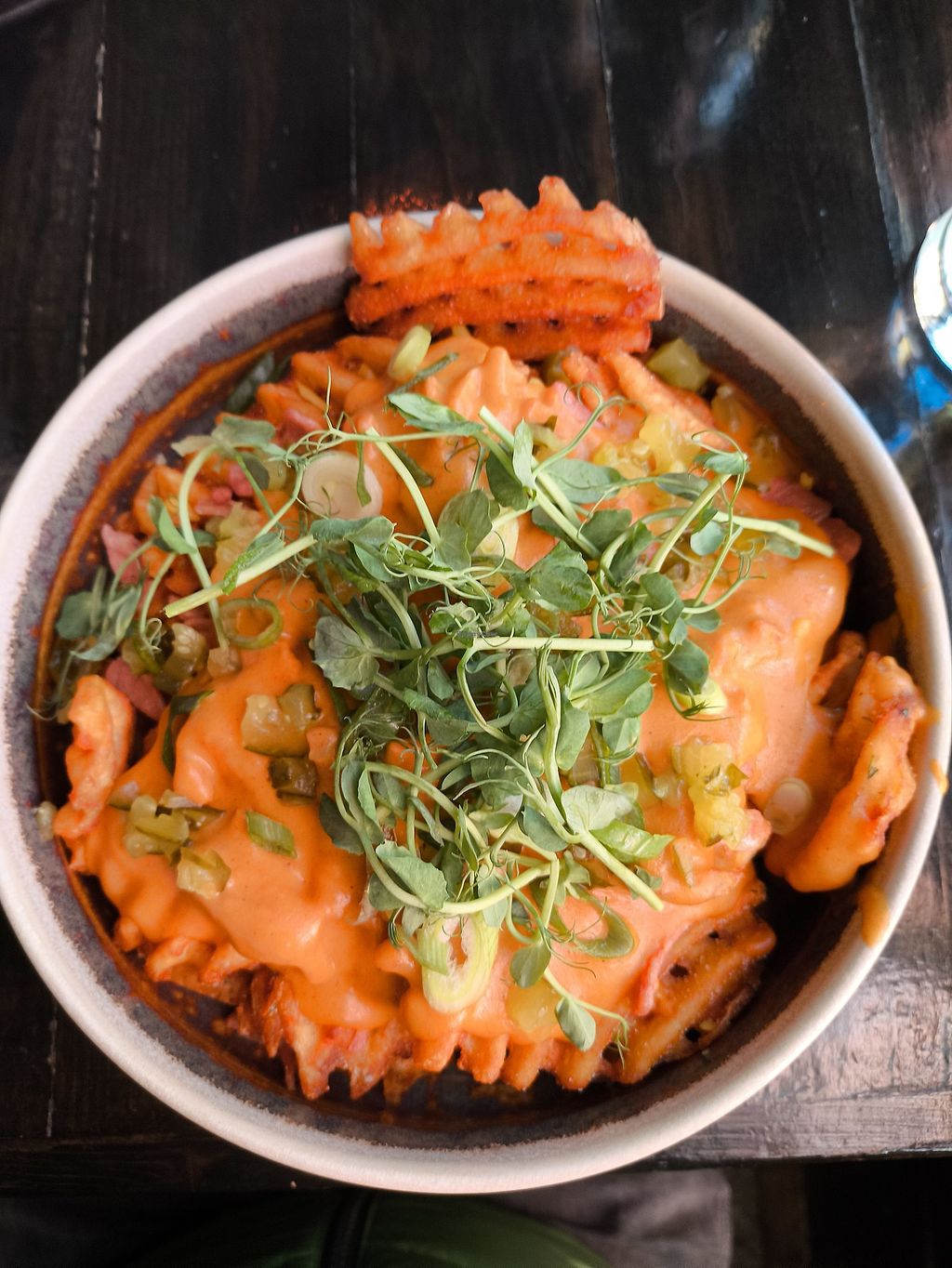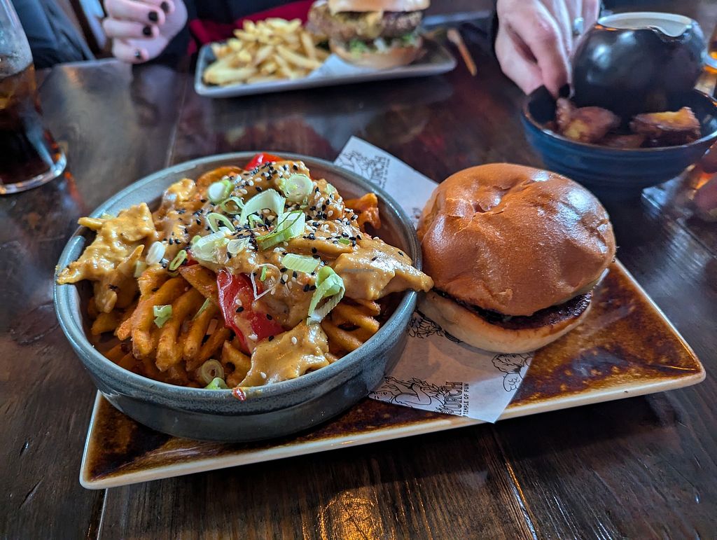 Pickle rib burger, waffle fries, peanut Miso dip, chicken tenders and …