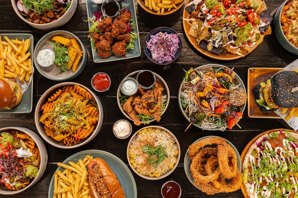 Psycho burger, Chicken burger, loaded fries, and the donner