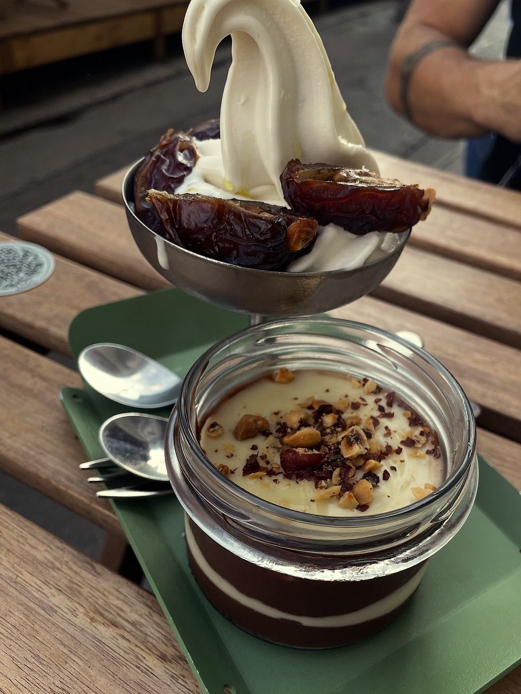 Excellent vegan menu and a very cozy venue! We had two ice coffees and some tiramisu.
