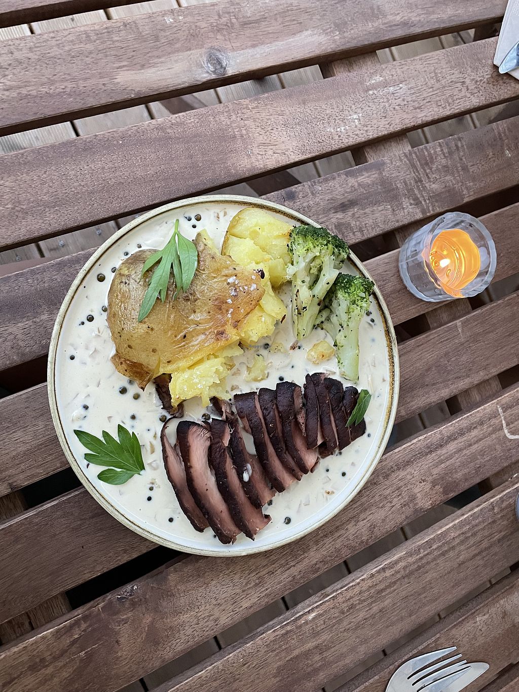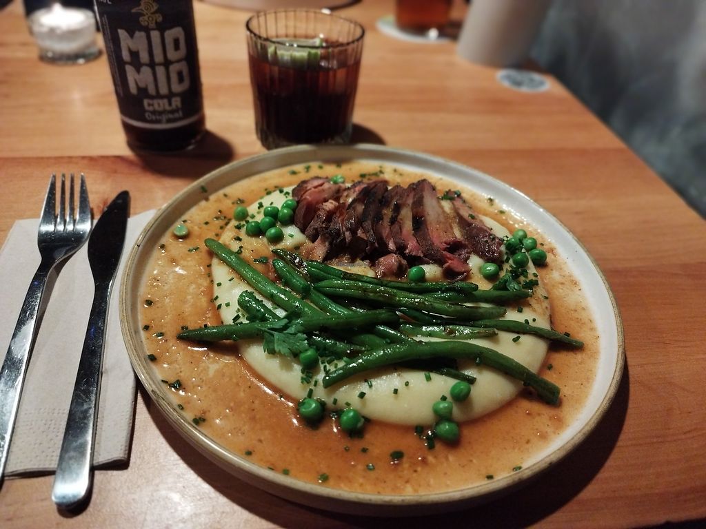 To jest top wegańskich restauracji. Jedliśmy pieczone warzywa z sosem i pesto grzanki, kopytka z wytrawnym sosem, babkę cynamonową z kremem i babeczkę z ciasta francuskiego z budyniem i brzoskwinią na deser- wszystko było przepyszne.