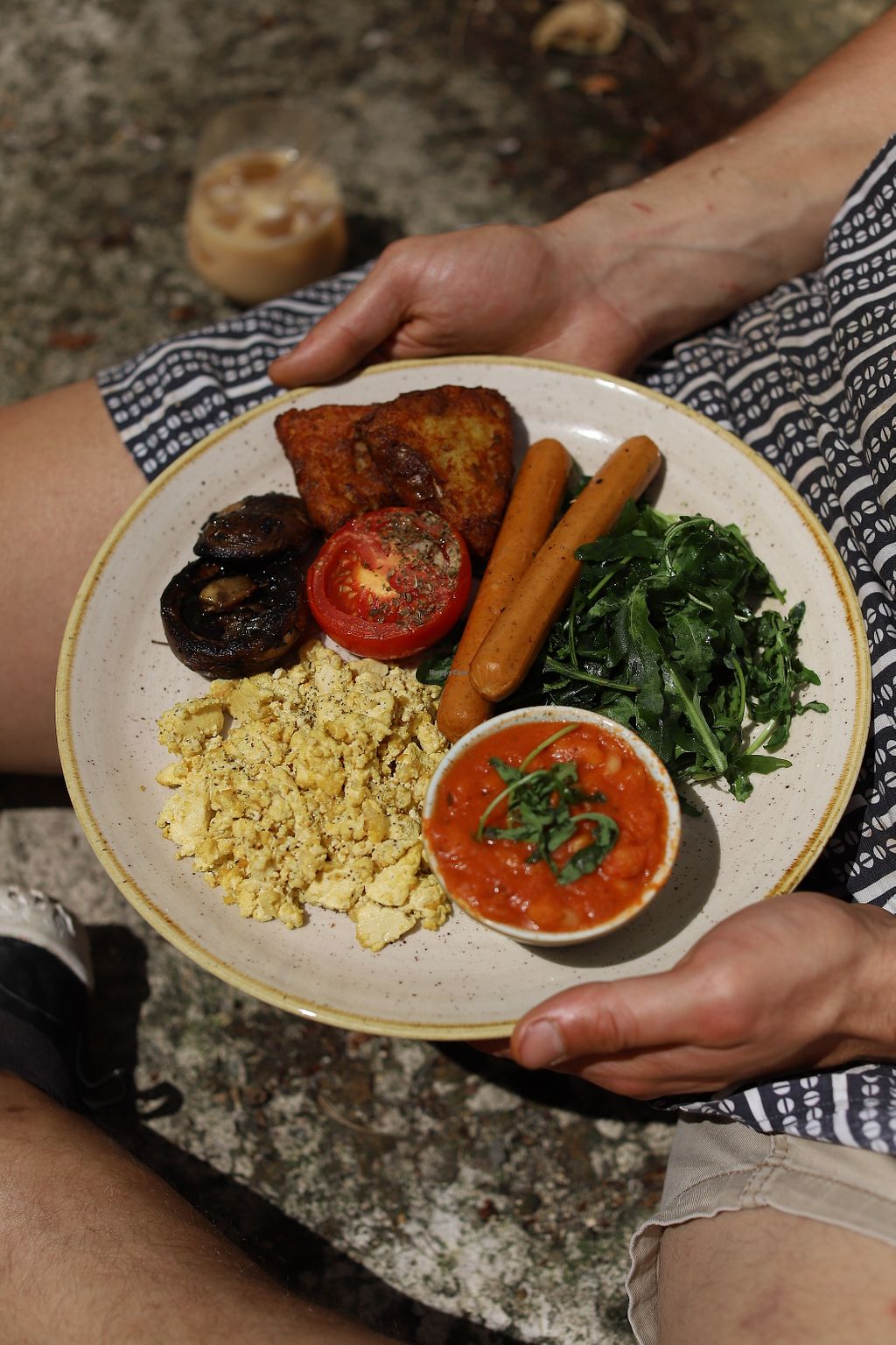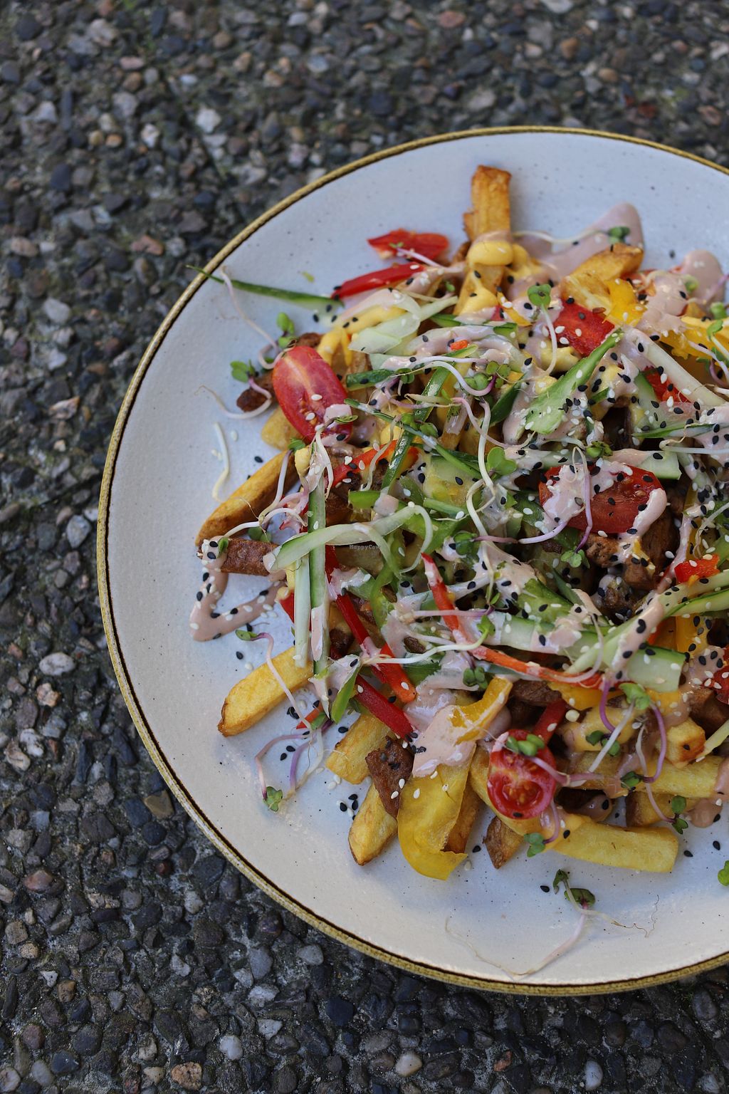 Pizza "bianca" with a lentil base, mushrooms and basil