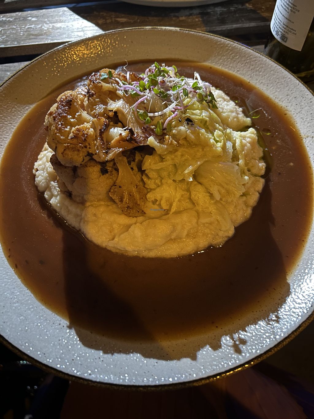 Pumpkin risotto with tempeh, onion, mozzarella and walnuts