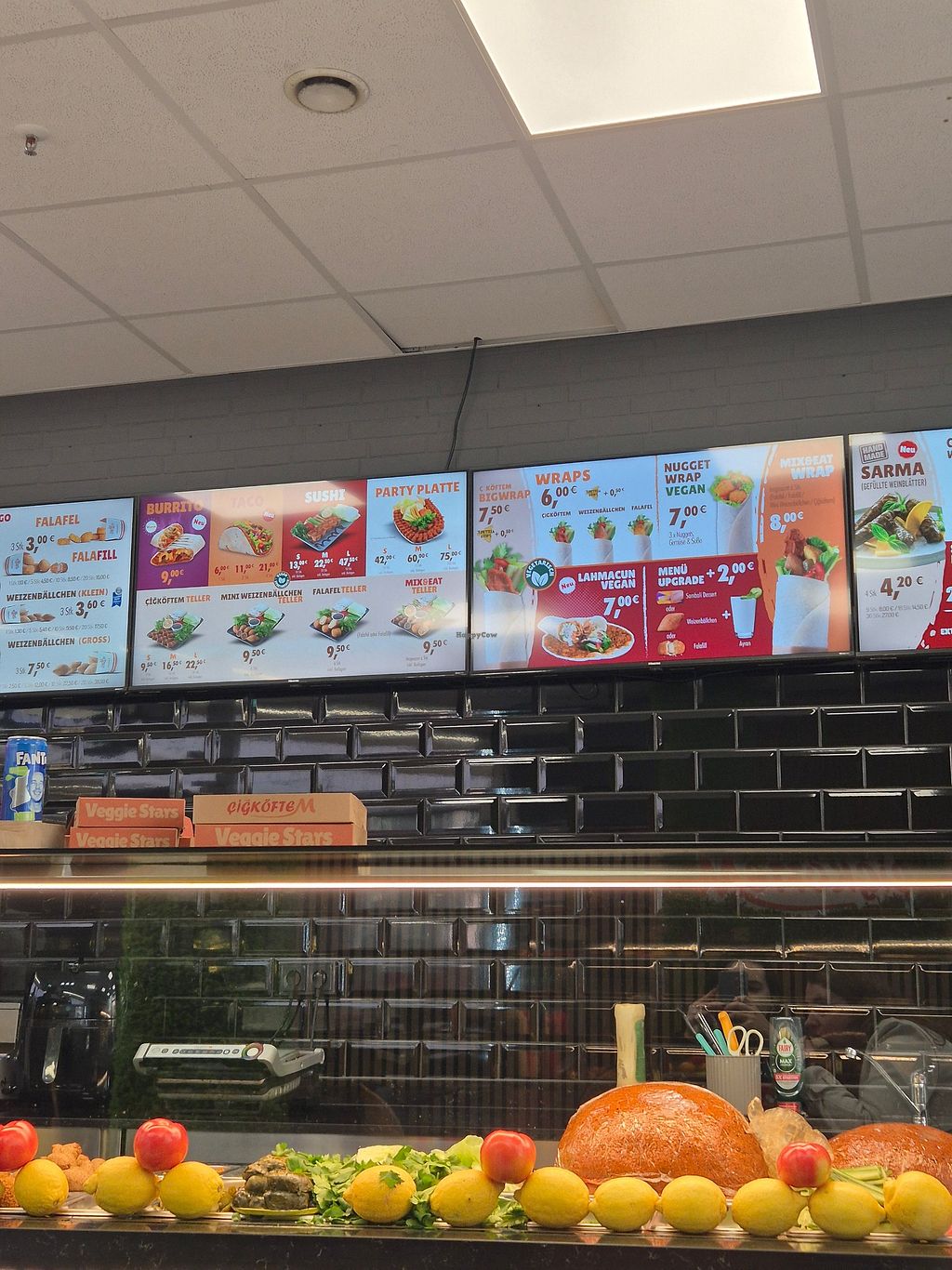 International franchise of vegetarian eateries specializing in Turkish vegan kofte made of bulgur, tomato, herbs, and spices. Available as a wrap, burger, or with durum (wheat). Also has falafel and pita. Most food is vegan, but drinks and desserts may contain dairy and/or honey International franchise of vegetarian eateries specializing in Turkish vegan kofte made of bulgur, tomato, herbs, and spices., Cigköfte are available as a wrap, burger, or with durum (wheat). Also has falafel and pita. Open Mon-Sat 10:00-20:00. Closed Sun.