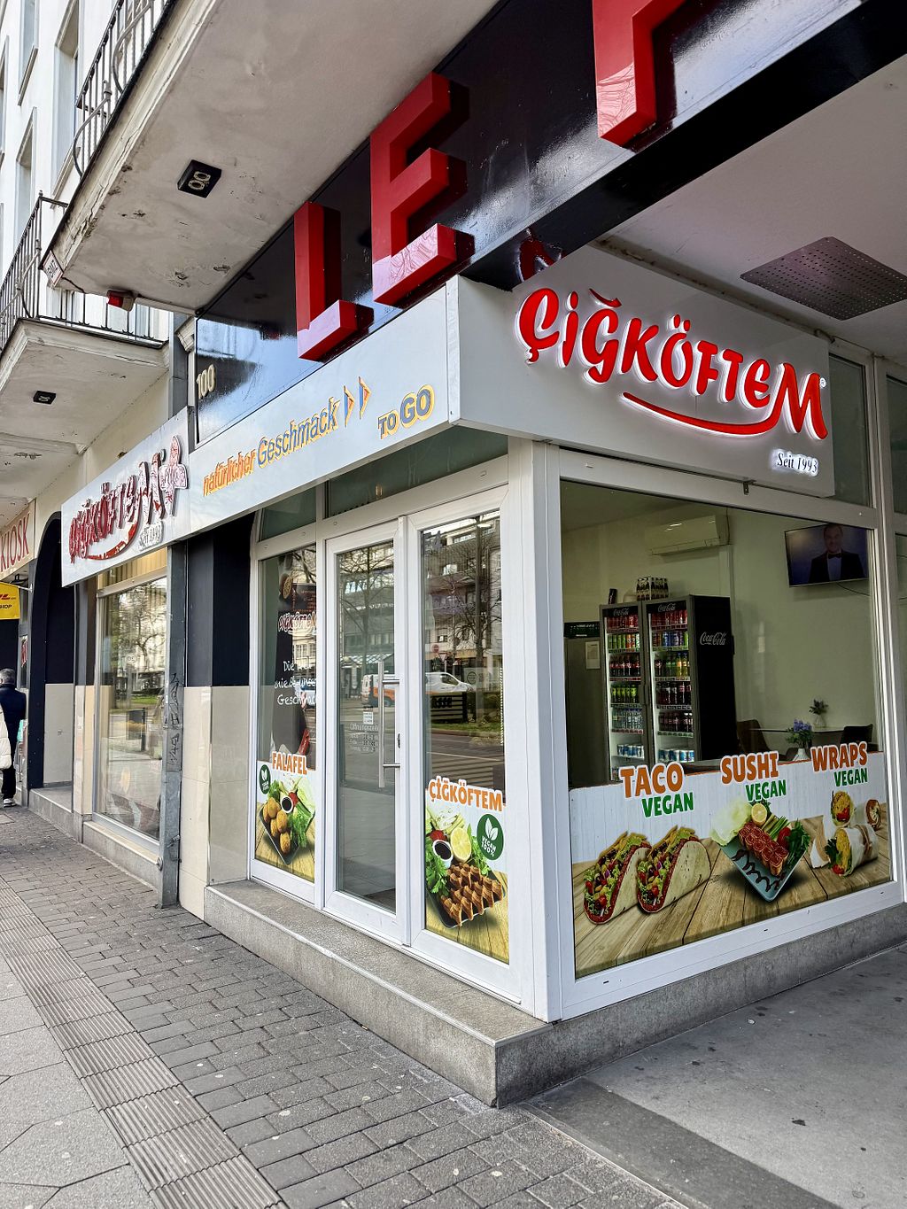 Never trust them when they say 'vegan' — one drink (ayran) is pure animal milk. Ask explicitly as in all cigköftem stores. Friendly. Close to train station. Six seats inside, none outside.