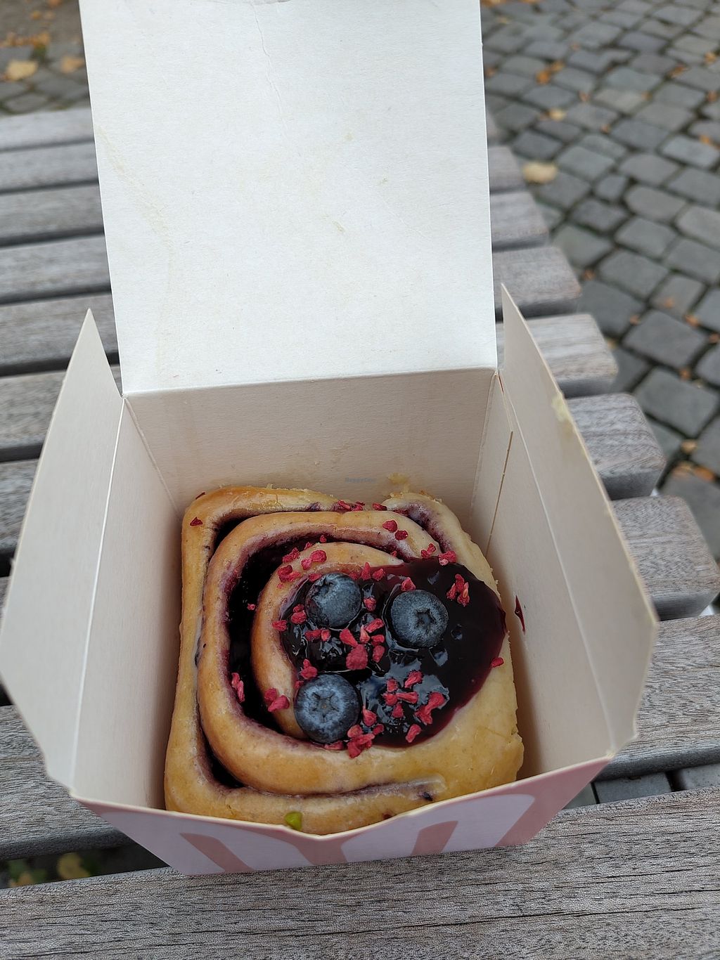 Good service and nice with more than two options to choose from. There was four or five vegan ones and they all looked delicious. A bit pricy - we payed 9.40 euros for two buns. I could not eat more than one, so I would recommend if you are two you can choose two different ones and split them!