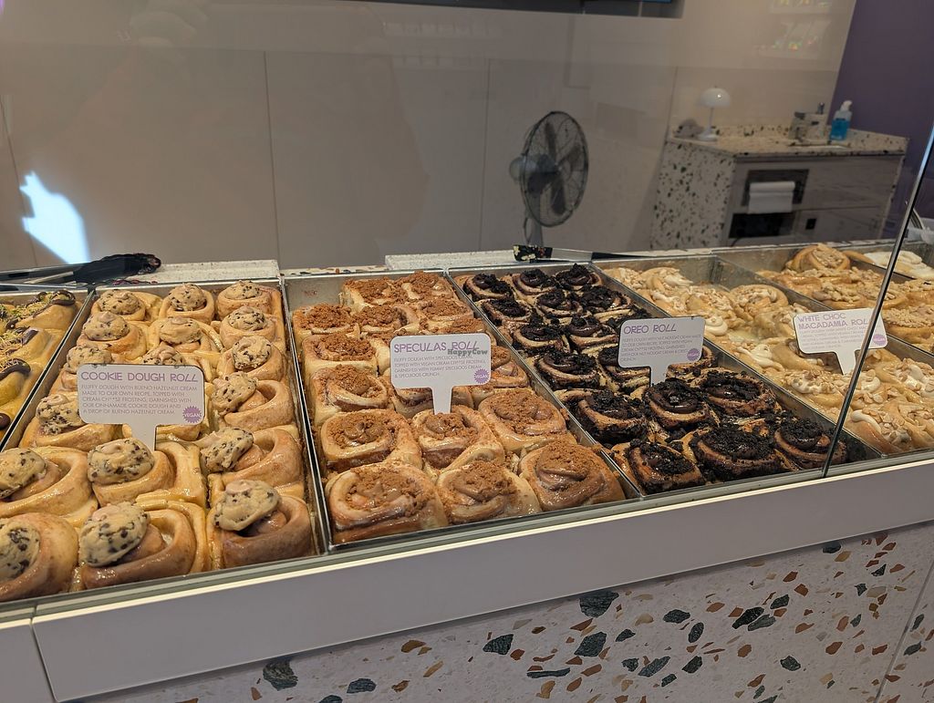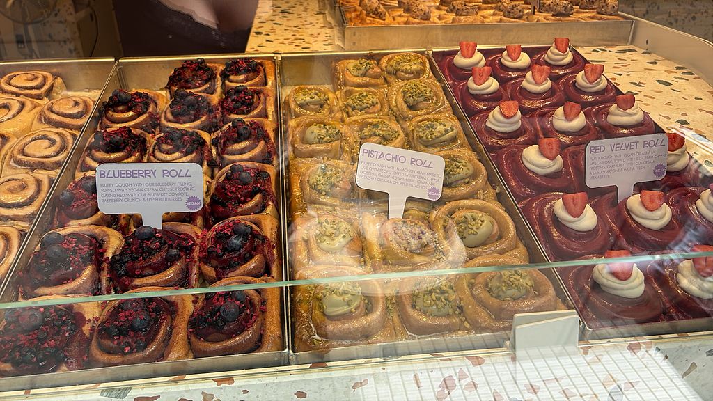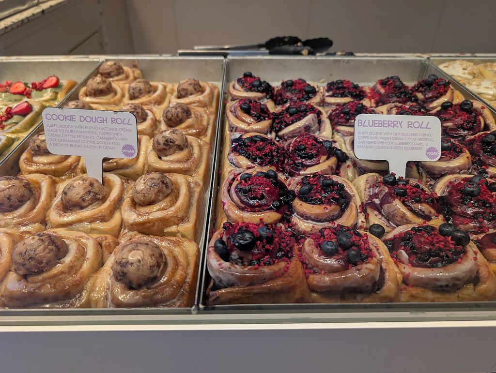 Bakery franchise specializing in cinnamon rolls with a large variety of vegan fillings and toppings. Example flavors include Oreo, cookie dough, chocolate, carrot cake and more. Options may vary by daily. Open Mon-Thu 11:00-21:00, Fri 11:00-00:00, Sat 09:00-00:00, Sun 09:00-21:00.