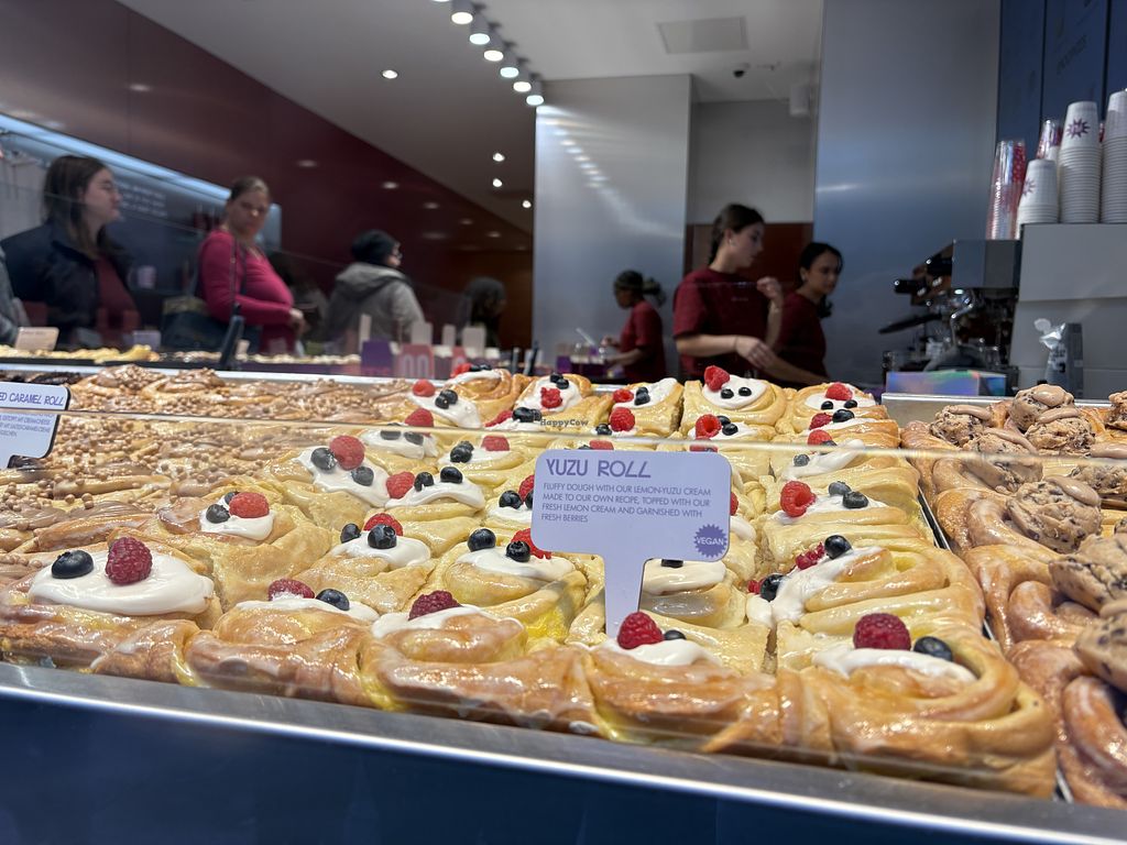 Bakery franchise specializing in cinnamon rolls with a large variety of vegan fillings and toppings. Example flavors include Oreo, cookie dough, chocolate, carrot cake and more. Options may vary by daily. Open Mon-Fri 09:30-20:30, Sat 09:30-21:30, Sun 12:00-18:00.