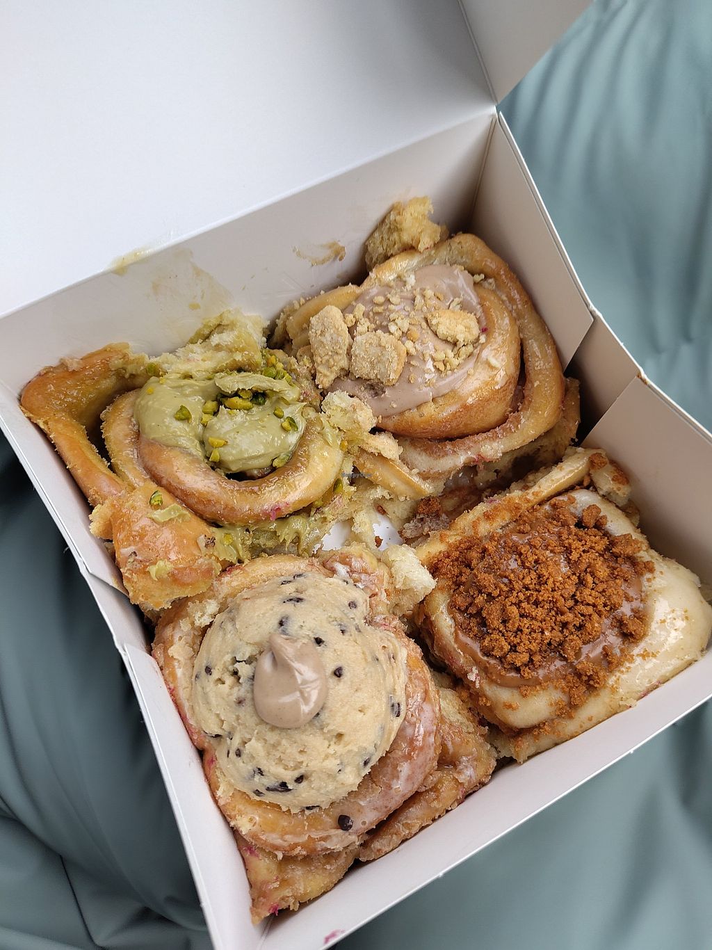 Genuinely delicious pistachio cinnamon rolls! The red velvet just tasted normal! Still good!