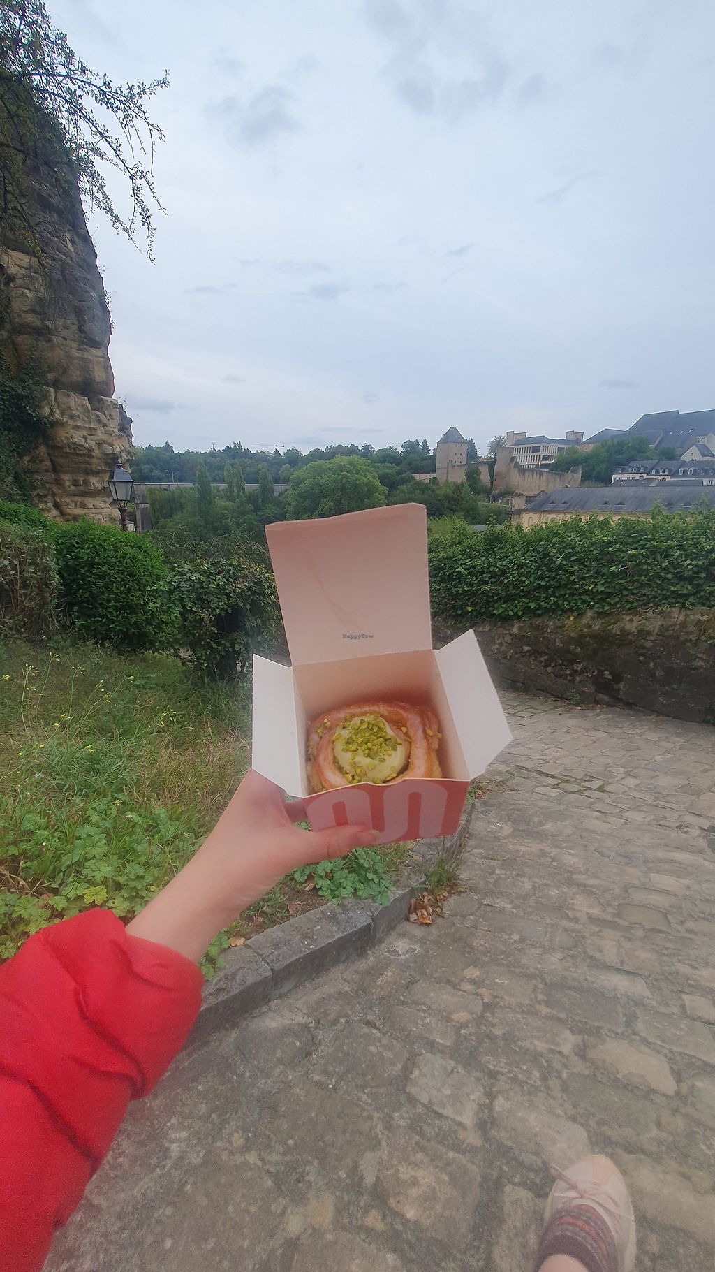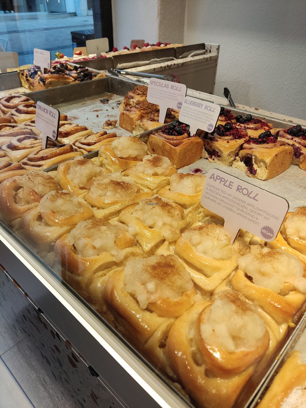 Some rolls are not vegan, but you will not miss any of them. The vegan rolls are just amazing🤤 My favorite is the oreo roll. The good part is the dough is vegan, so then the filling might be vegan or vegeterian. Also, the coffee is quite good, a bit pricy but as everything in Luxembourg. My recommendation is to put them in the oven if you take them home, they will be as fresh baked