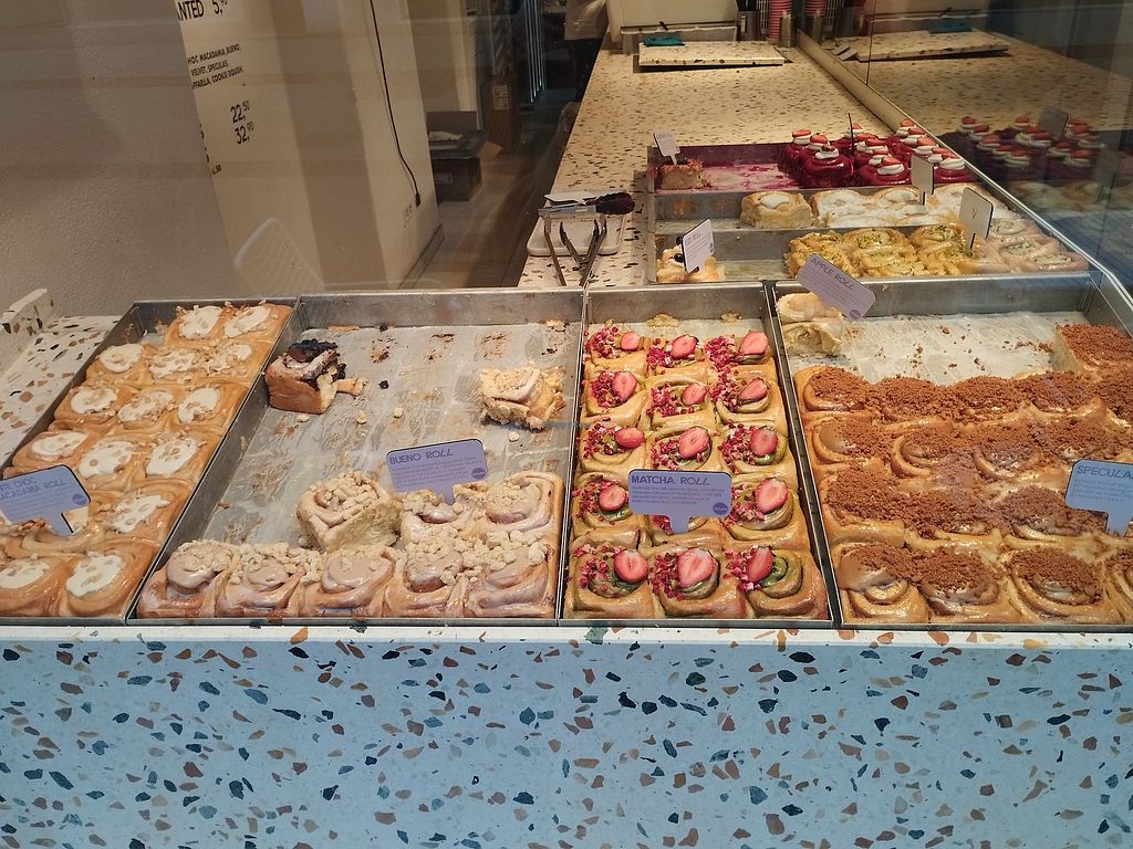 Many vegan options! We had one red velvet, one coffee and a bueno cinnamon roll. They were tasty! About half of the cinnamon rolls are vegan!!