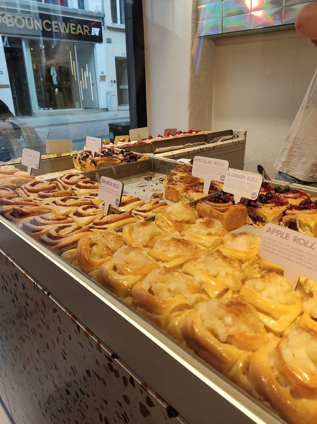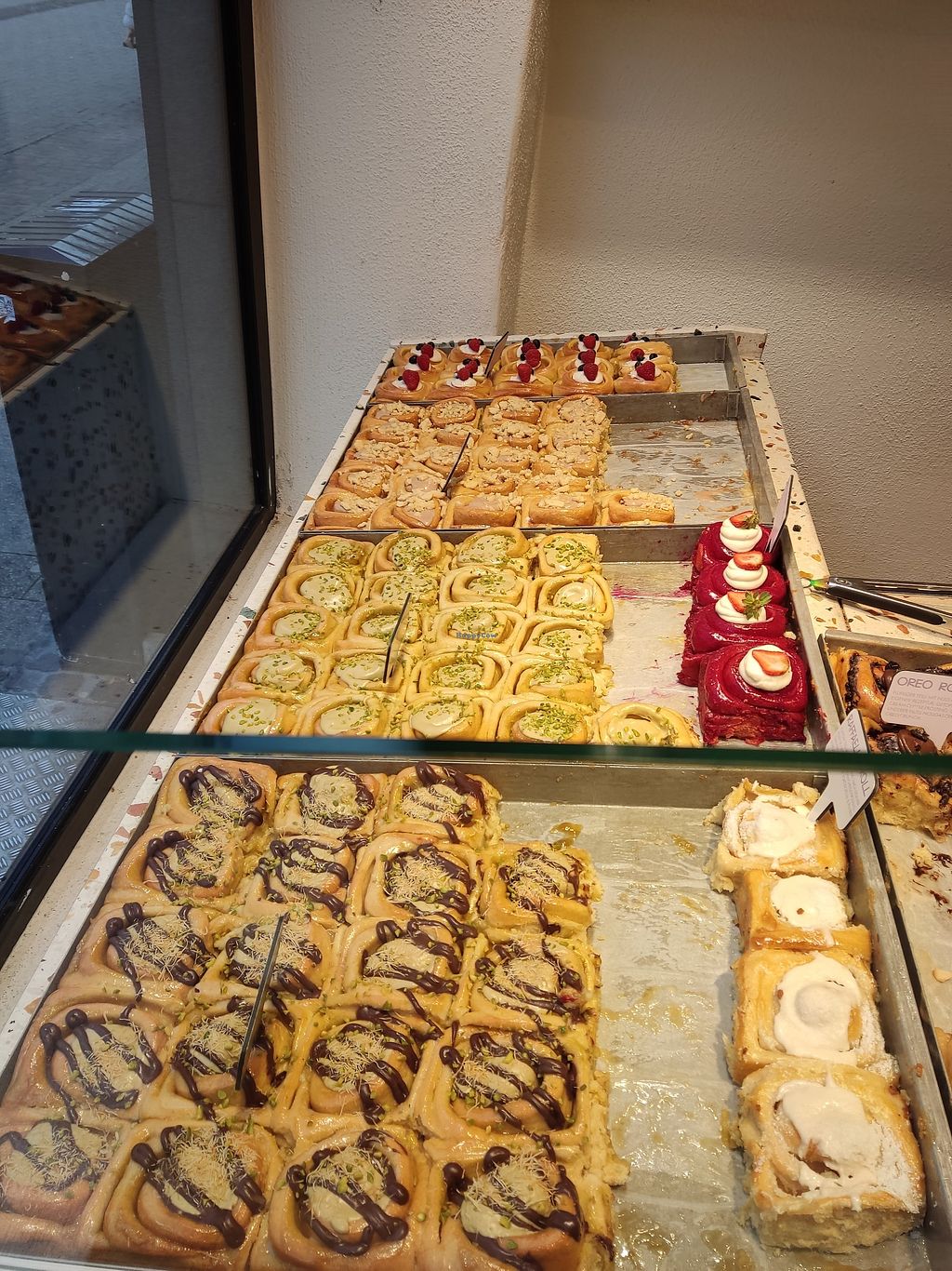 Good range of cinnamon buns that are light and fluffy with delicious flavours. Took advantage of the small seating area at the back of the shop to have a coffee as well. The chilled music, funky furniture and walls decorated with half-mirror balls made this a good break from the streets. Enjoy.