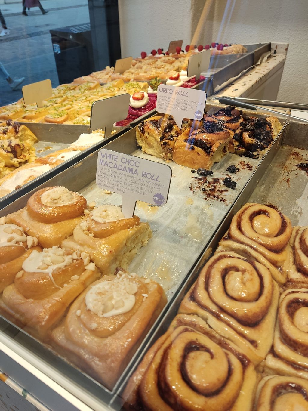 You can choose a roll with the topping / flavor your want. Most of them are not vegan but there is always at least 5 vegan choices. The brioche is really sweet and you can eat the rolls inside, the place is cool and well decorated.