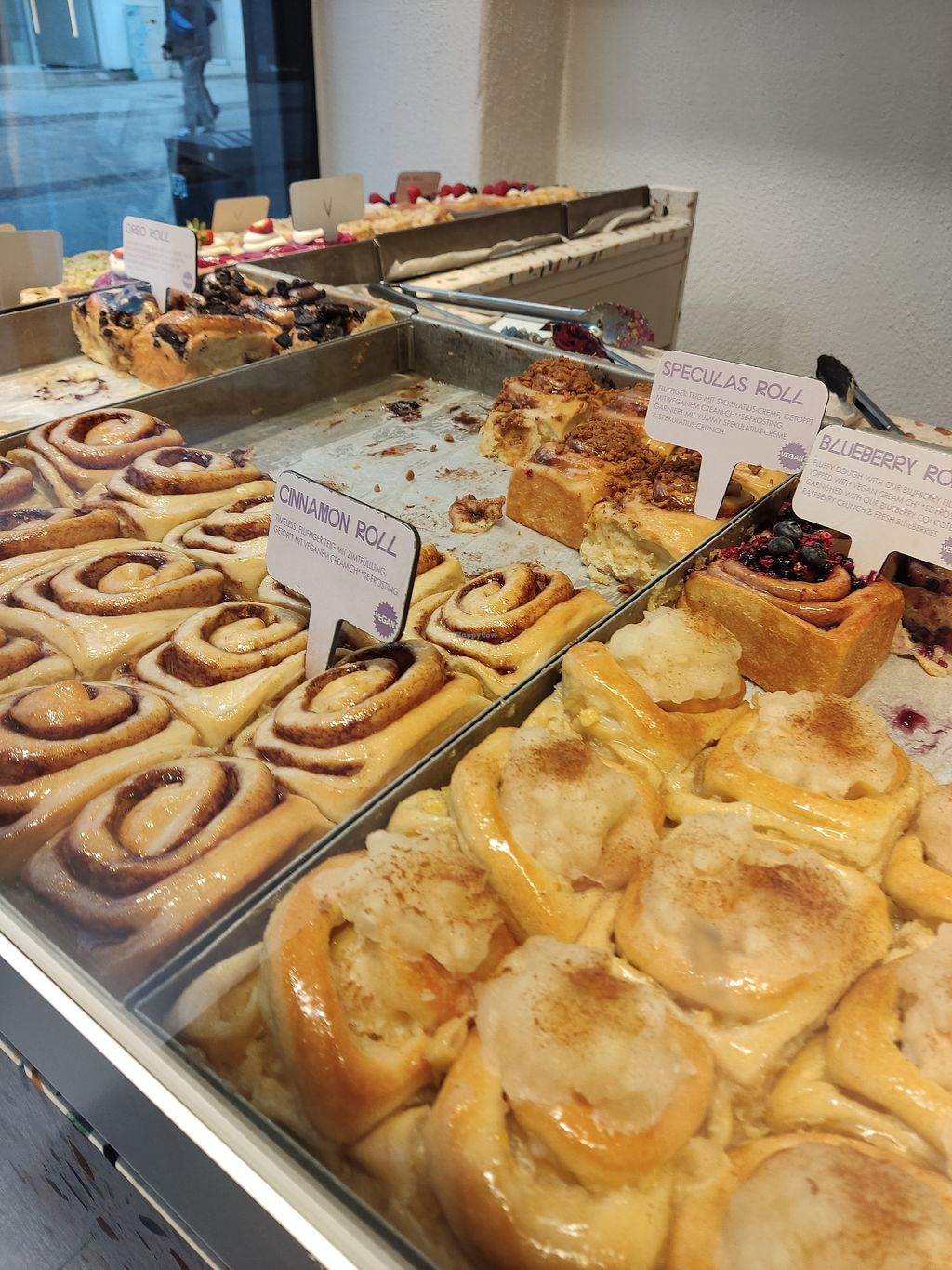 We had the vegan Speculoos cinnamon roll and it was delicious! All the vegan options were clearly labeled, and there were many.