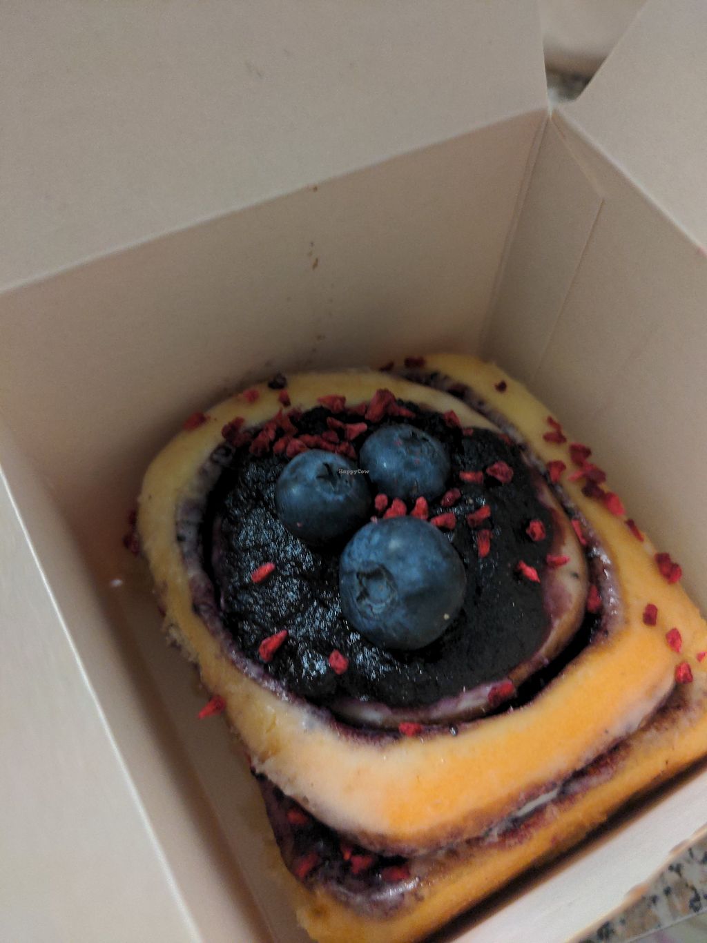 About half of the cinnamon rolls are vegan and are clearly labelled. I had the snicka and cherry choc rolls, both of which tasted absolutely perfect! The price is rather high for the size, though - hence one star less.