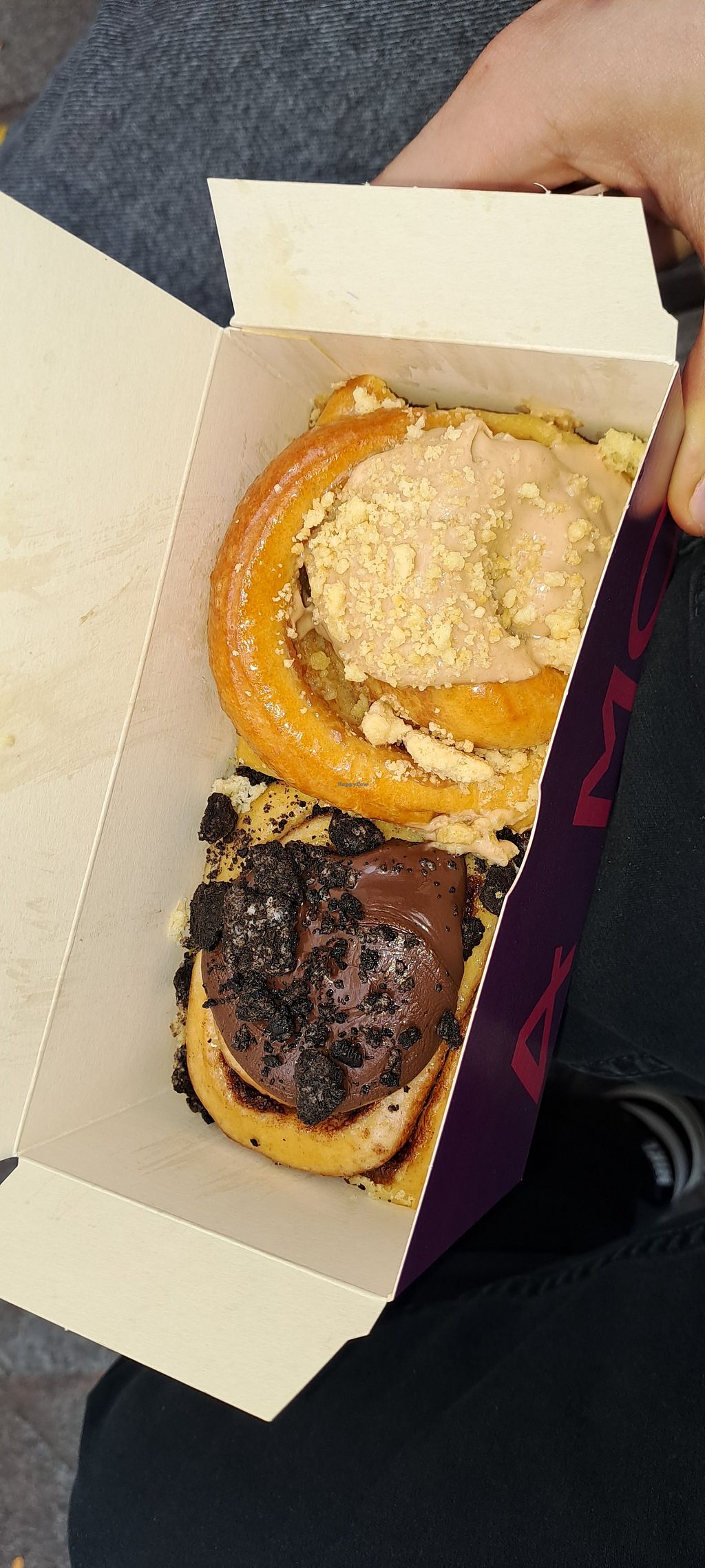 I loved the toppings, but the actual cinnamon roll was just alright. I feel like it’s basically just the vessel, like a cracker. Could be thinner and more out of the way haha I didn’t care much for it, but it was still good.