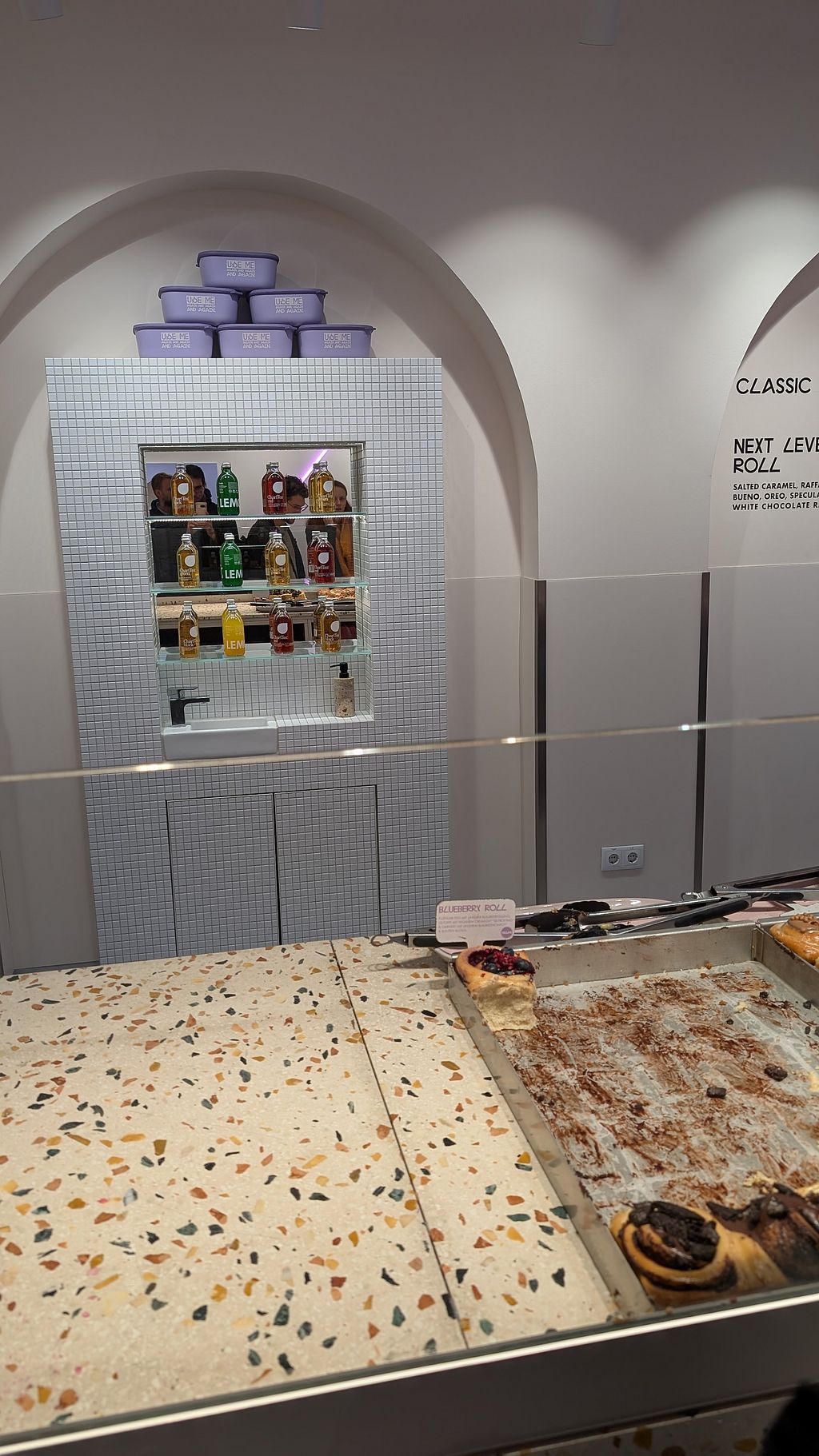 I had two Cinnamon rolls, apple and red velvet. Both tasted good and looked pretty. In my opinion they are overpriced, I paid 10€ for both.