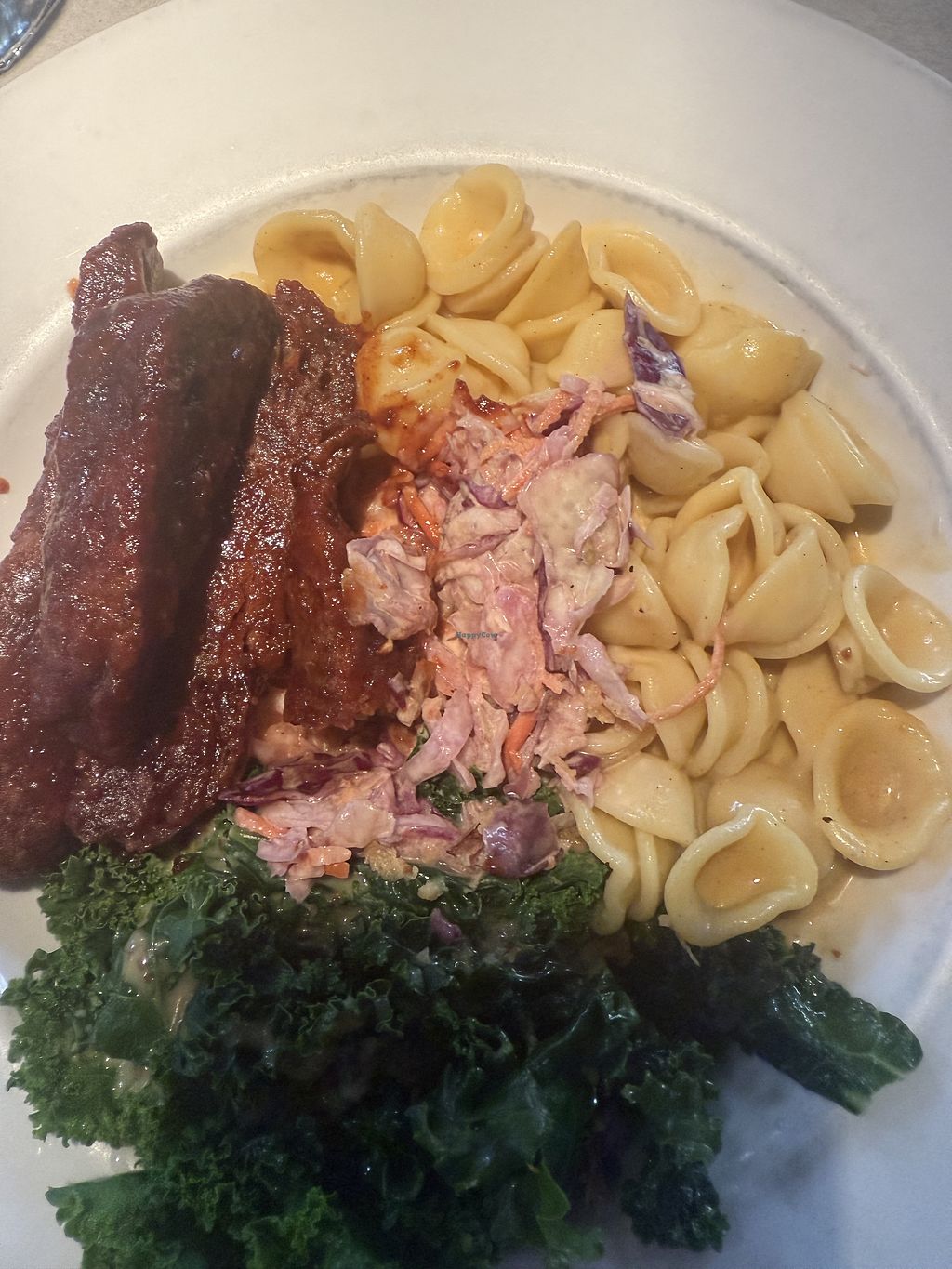 Read moreHad the seitan bbq bowl - came with Mac and cheeze, coleslaw, and greens ( tad bit too salty for me otherwise delicious)