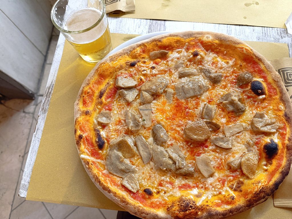 We took the "pizza con funghi porcini" and "vegetariana", both with vegan mozzarella.