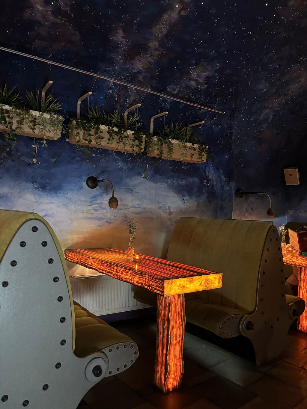 Unique design, fair amoynt of vegan options, central location. Reservation recommended