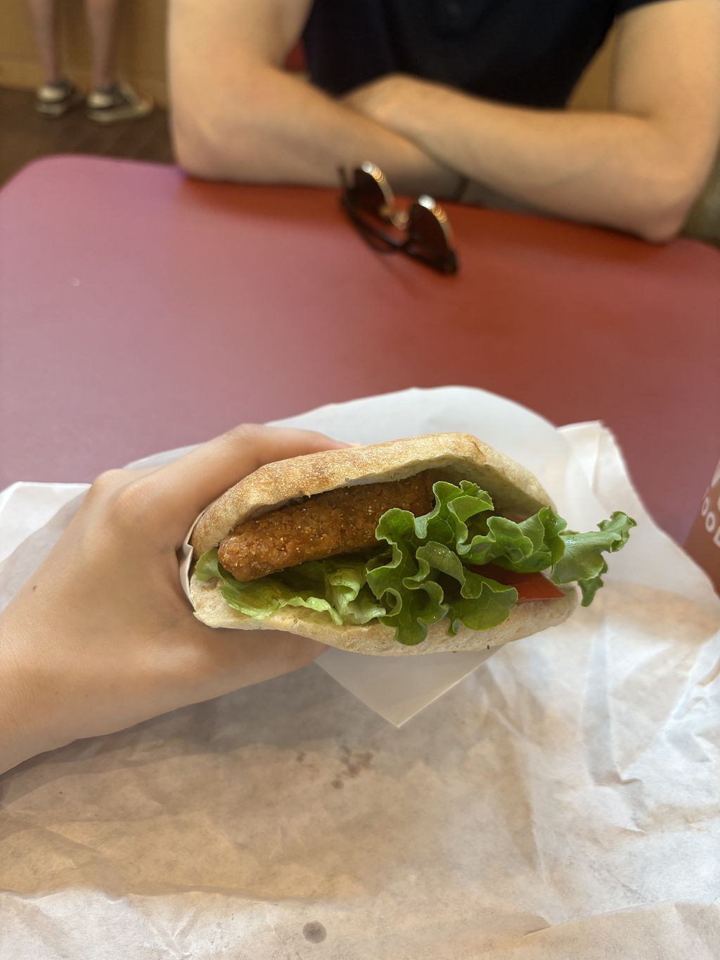 loved theie "chicken" sandwich! the pita was delicious and it was a perfect lunch! lots of options for everyone!