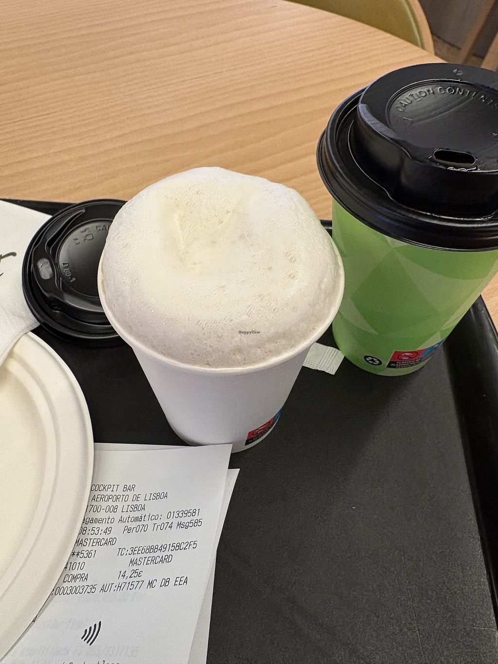 Serves meat, vegan options available. Restaurant located in the food court in terminal one of the airport. Offers vegan options such as a veggie burger, portobello sandwich, and hummus toast. Options are clearly labeled.