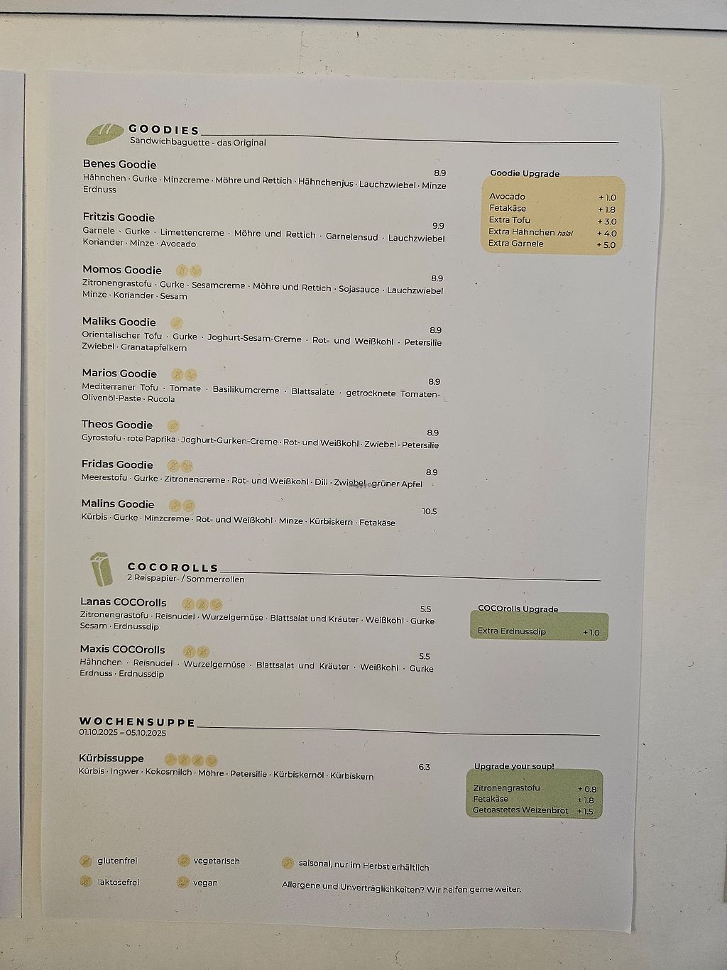 sehr geile Auswahl an veganen belegten Baguettes und Bowls, leckeres Tofu. würde 5 Sterne geben^^