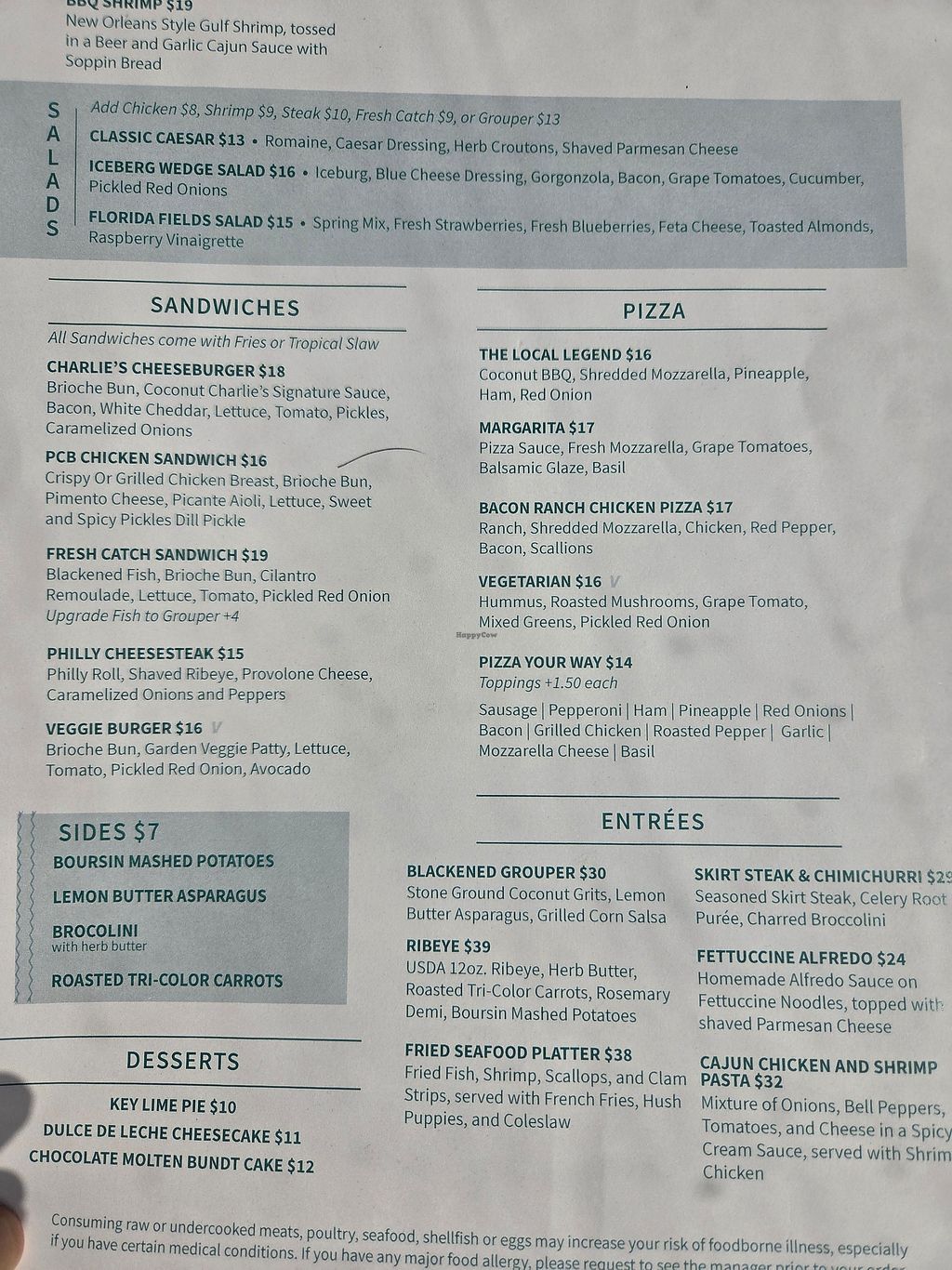 The blackened tofu steak is no longer on the menu. The only vegan options are the veggie burger and the cheeseless pizza.
