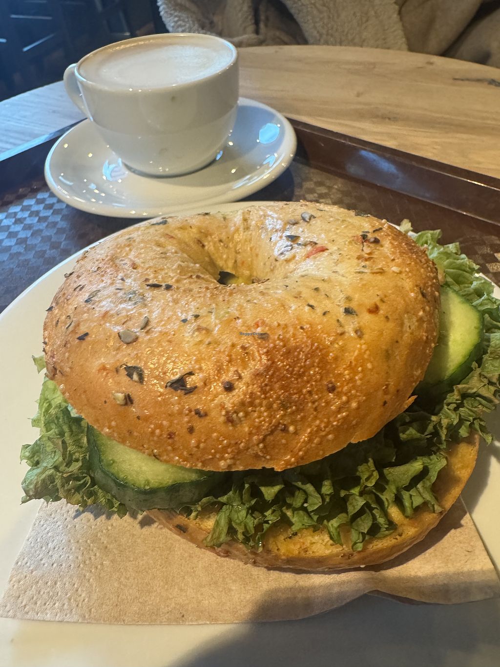 Lovely coffee with a variety of plant milk options! Also some vegan bagel options for lunch! 👍