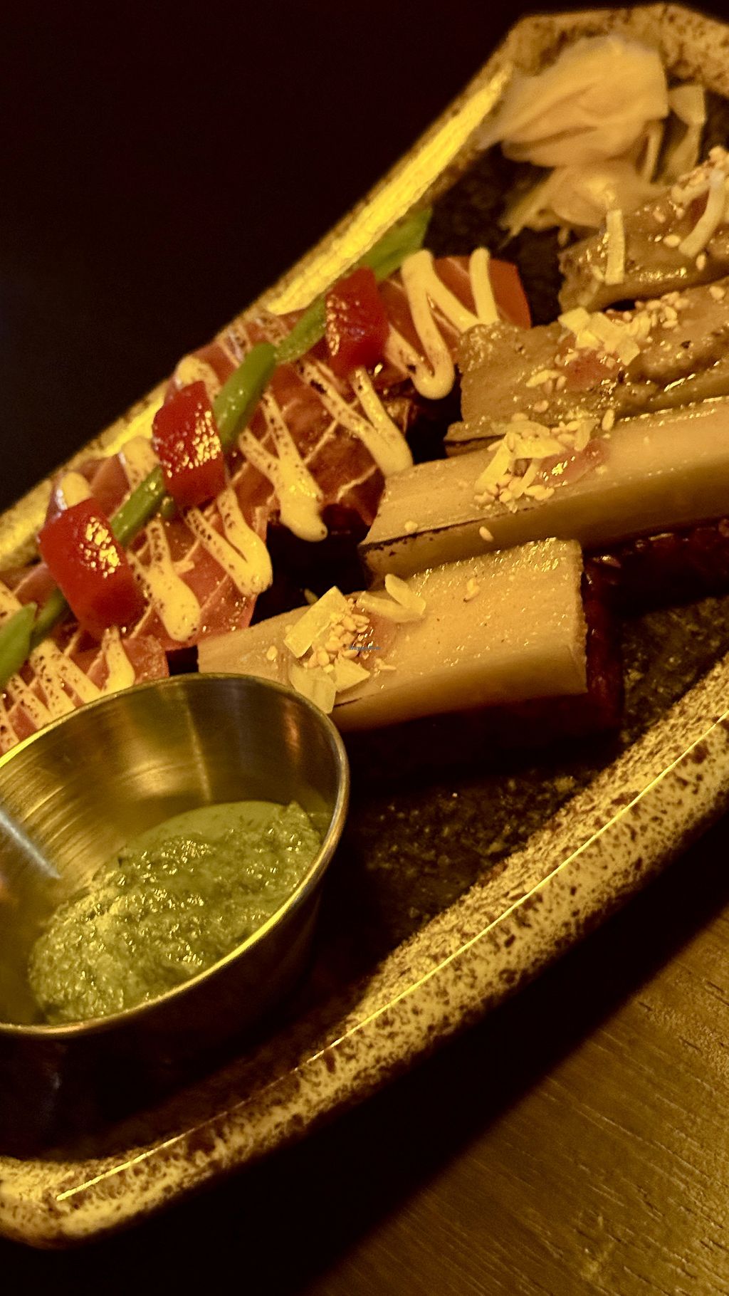 A special Japanese experience, we went for the à la carte options using their bento boxes to try their full range of appetisers (all except the quiche) and the tofu pouch sushi. The waiter was super friendly and helped guide us on how much to order and what they recommend. We got two pine boxes and a bamboo box, in addition to the assorted veggie skewers. The tofu pouch sushi were amazing and we tried all five options - each very special! Each option on the a la carte menu was delicious and had such unique flavours. We did try the sake flight, a new one for us and they were again very special and held so many notes - highly recommended!
