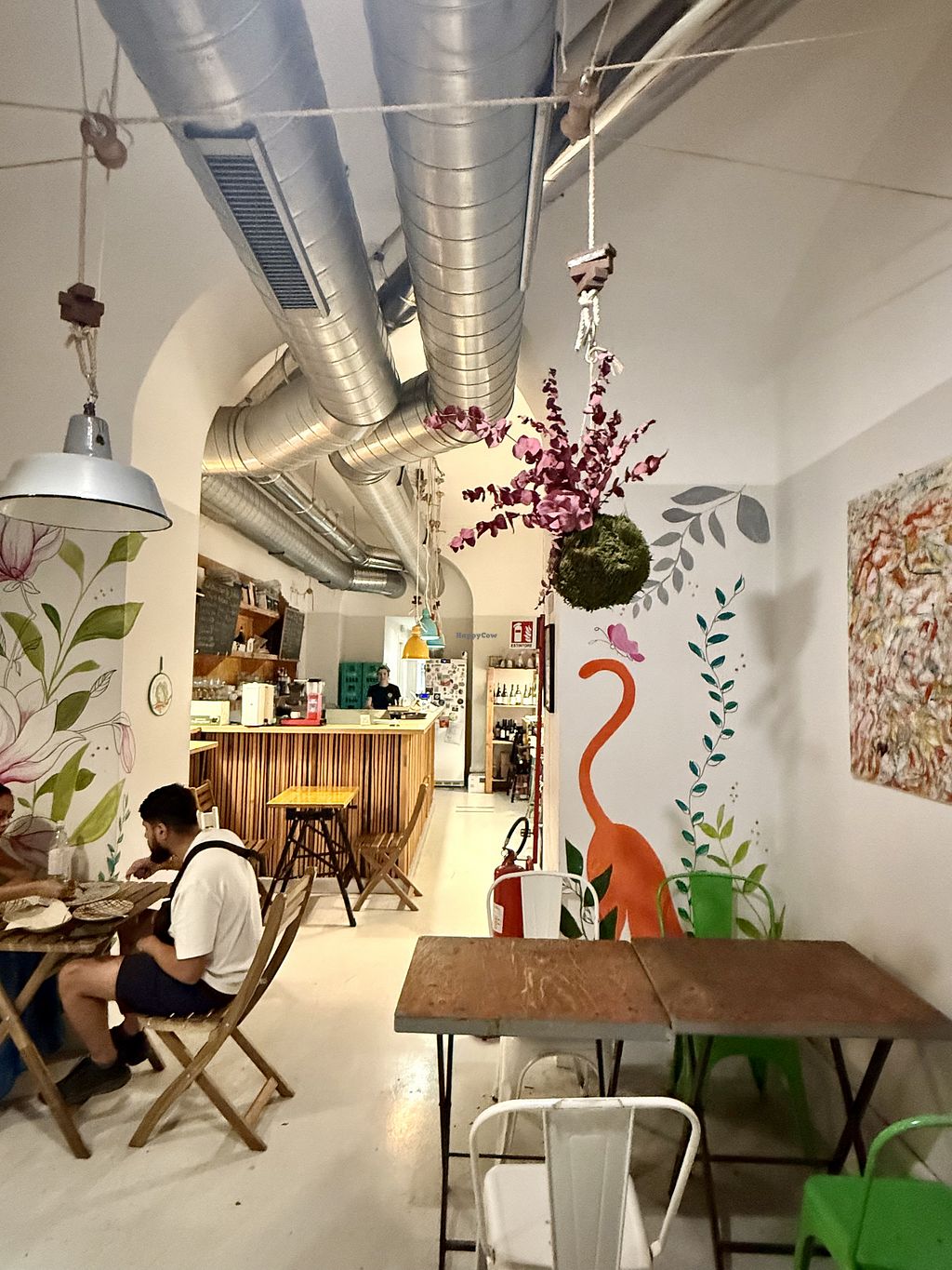 Siamo state al compleanno dei 3 anni di apertura del locale e appena entrate la proprietaria ci ha offerto un calice di bollicine buonissimo, già qui cinque stelle gliele dai sulla fiducia. Le mie amiche non vegane hanno apprezzato letteralmente tutto difatti stupite dalla bontà attingevano anche agli altri piatti. Era tutto buonissimo, l’atmosfera un po’ come a casa, le proprietarie super carine e i dolci spaziali!