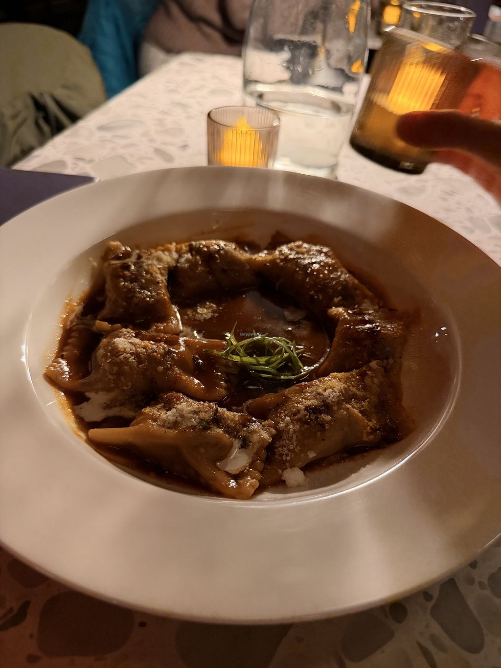 This is such a lovely place — the ambiance, the people and especially the food! The Puttanesca Meatballs were amazing. I ordered the Ricotta Raviolis and those were delicious too!
