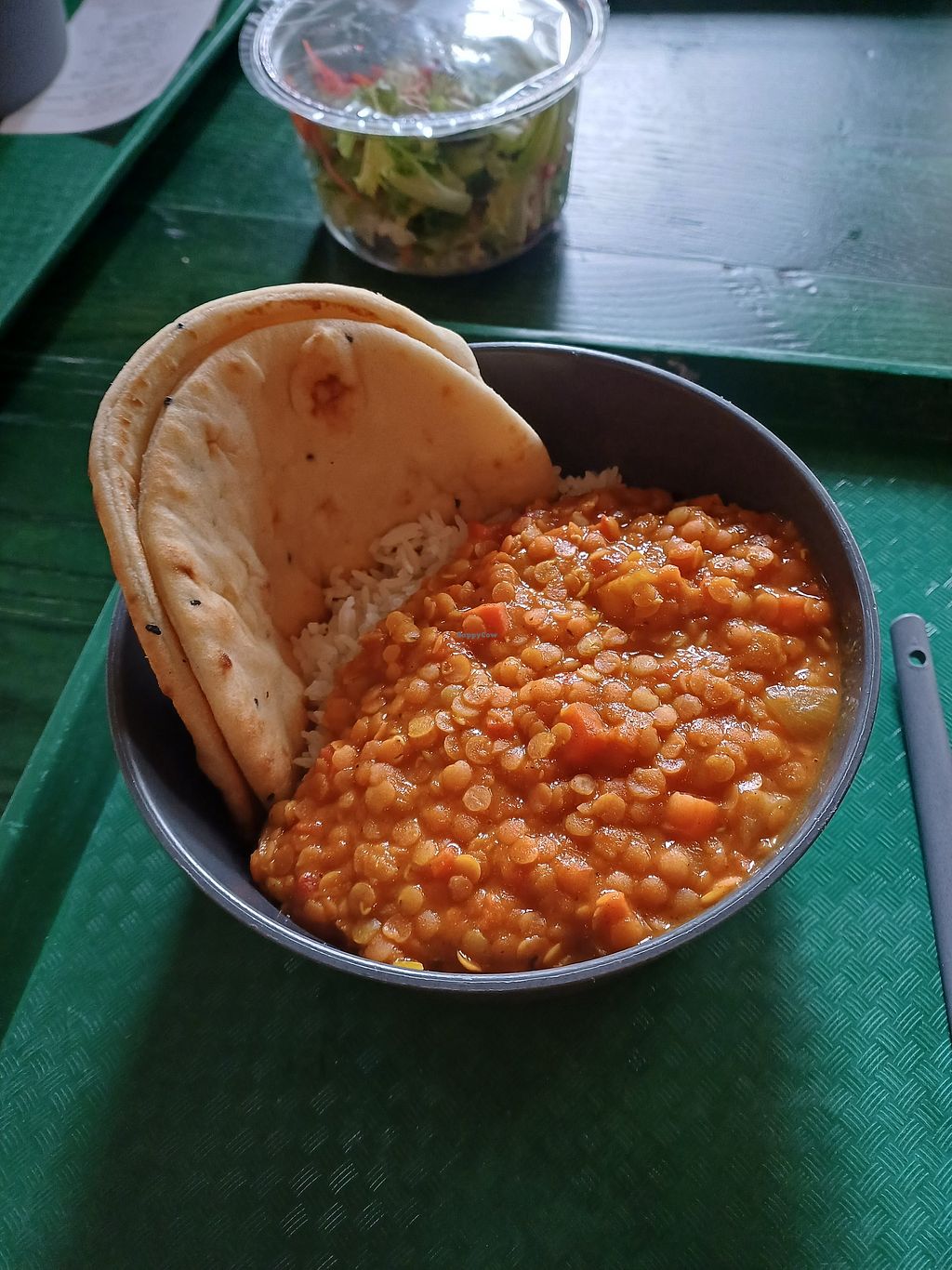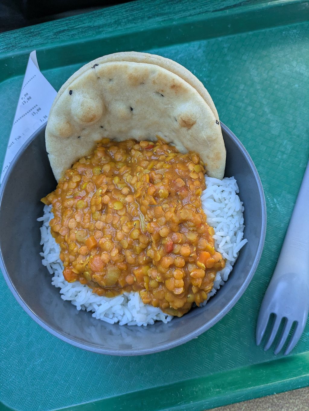 I wasn't expecting much, and I was pleasantly surprised. The lentil dahl was actually tasty, and it changes from the usual burger and fries.