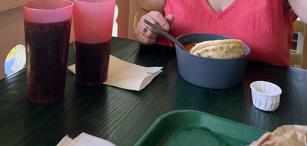Had the lentil dhal, onion bhajis, pakoras and flatbreads for lunch. Really good! The chilli oil was so good not too spicy. Unsure if the yogurt that came with the pakoras was vegan