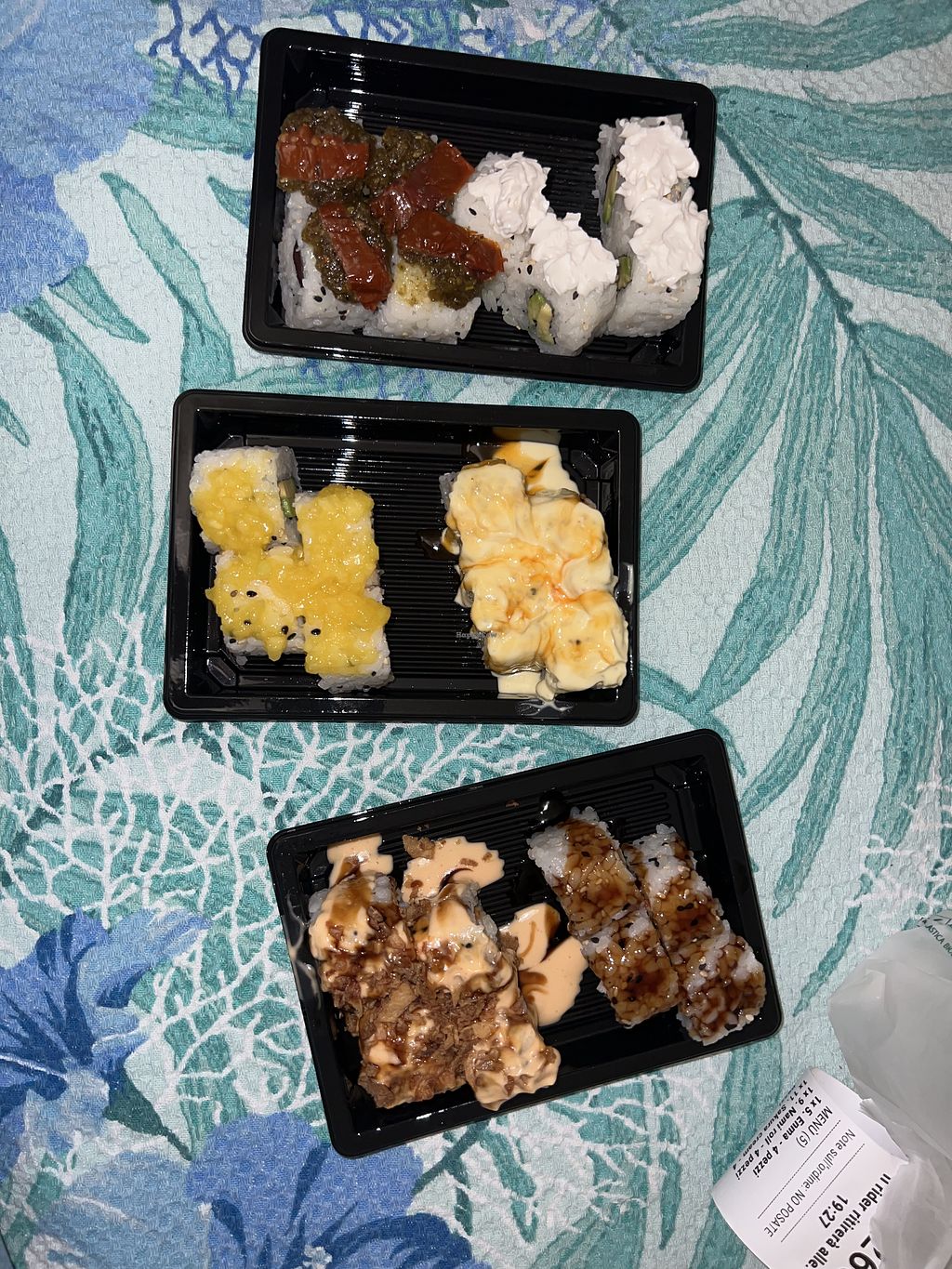 The reviews and pictures had given me high expectations. I decided to order the sushi because of the distance to the restaurant (normally it doesn't make much difference with sushi). However, when the sushi arrived, I was very disappointed. The sushi rice was dry, hard, and tasteless. Without the toppings, the sushi would have been uneatable. The combinations themselves were good, but definitely not worth the price.