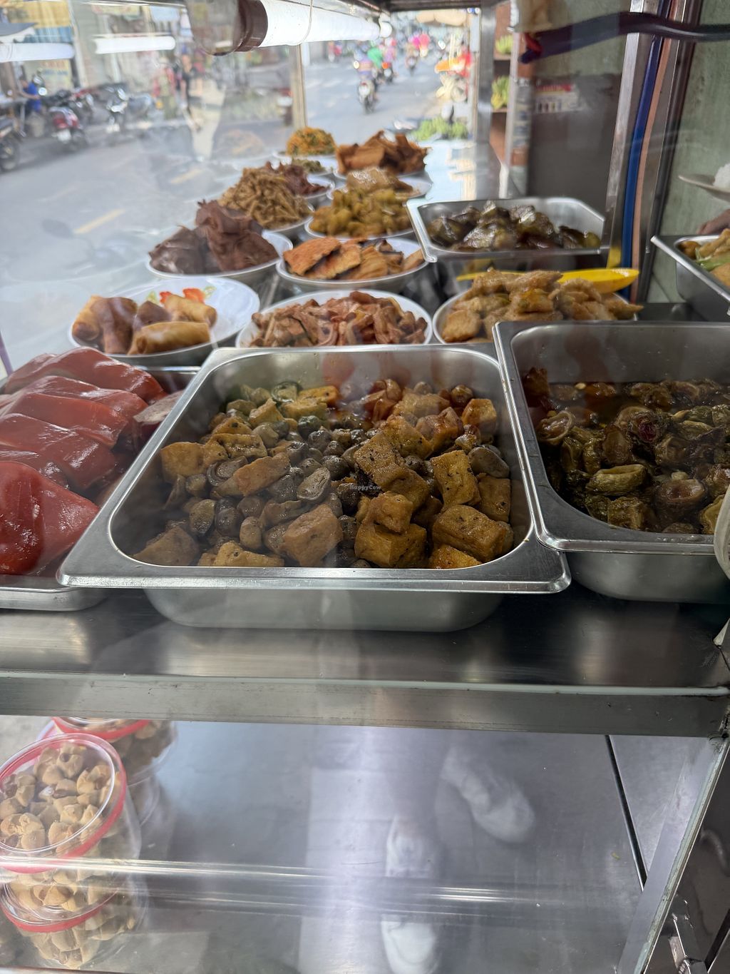My crispy square thing with a vegan filling was tasty and unique, but a little oily. A great selection of vegan pre cooked foods. My take away com chay was huge. Very tasty. All together I got that crispy square thing, a huge com chay and a little soup. 50.000 Dong for the lot. Great value.