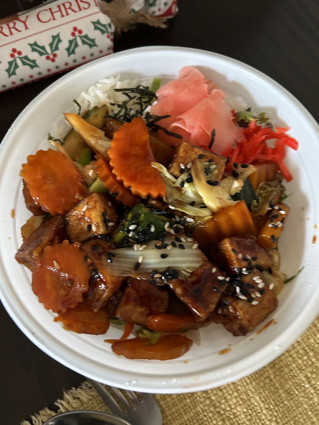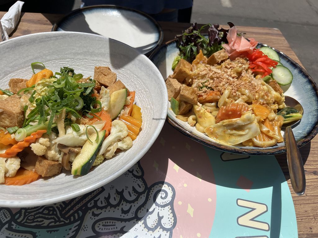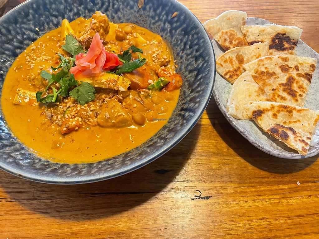 Wonderful food. We had spicy tofu poke bowl with soba noodles, vegan chicken katsu curry with rice and chickpea massaman curry with roti. So good.